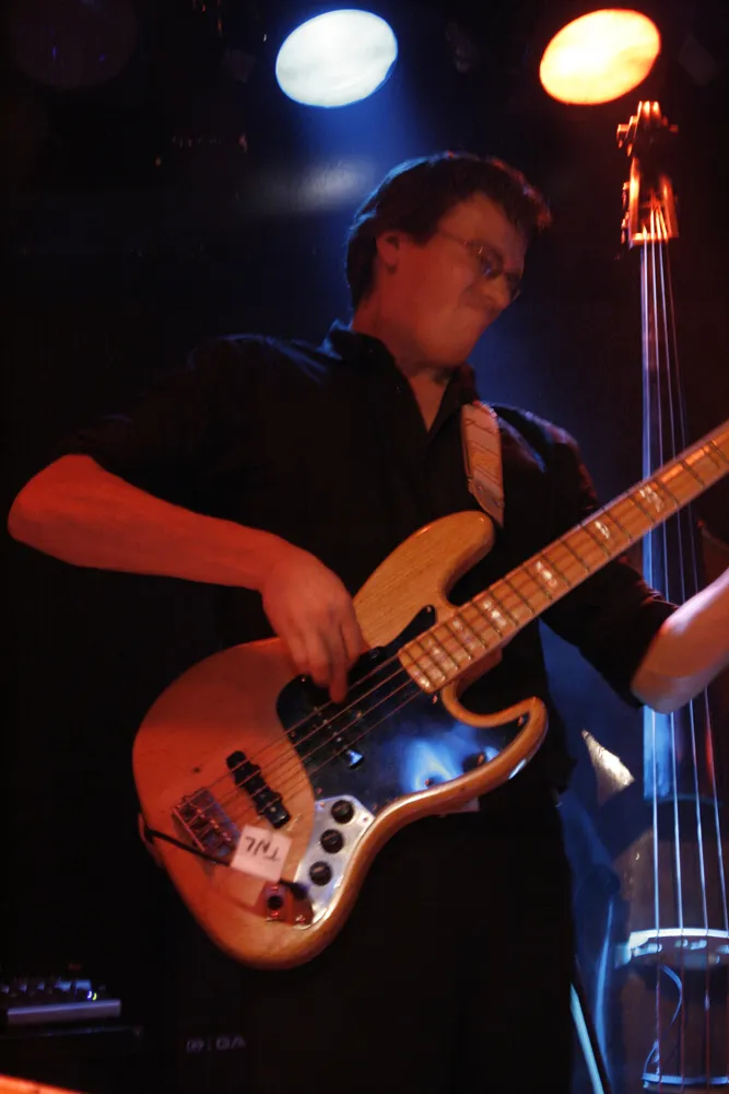 Maar een toegift zat er toch nog in: Mola Sylla liet zien met zijn heldere krachtstem ook nog een goede vocale drumsolo te kunnen geven. De mensen die woensdag liever naar Mischa's mannen gingen kijken dan naar Marco's mannen hadden helemaal gelijk. Dat het weer allemaal mannen waren is dan ook het enige kritiekpuntje. Er is toch geen spelregel dat er geen vrouwelijke laboranten welkom zijn op het speeluurtje? Foto's: Björn Berings
