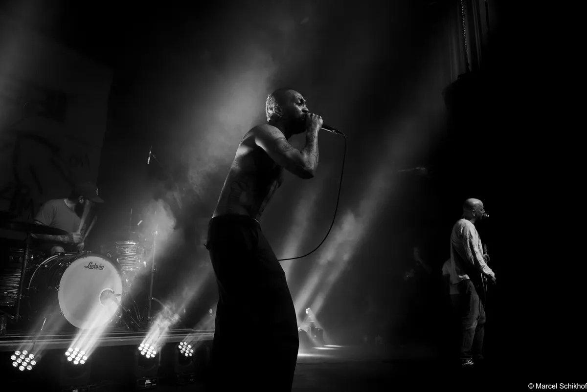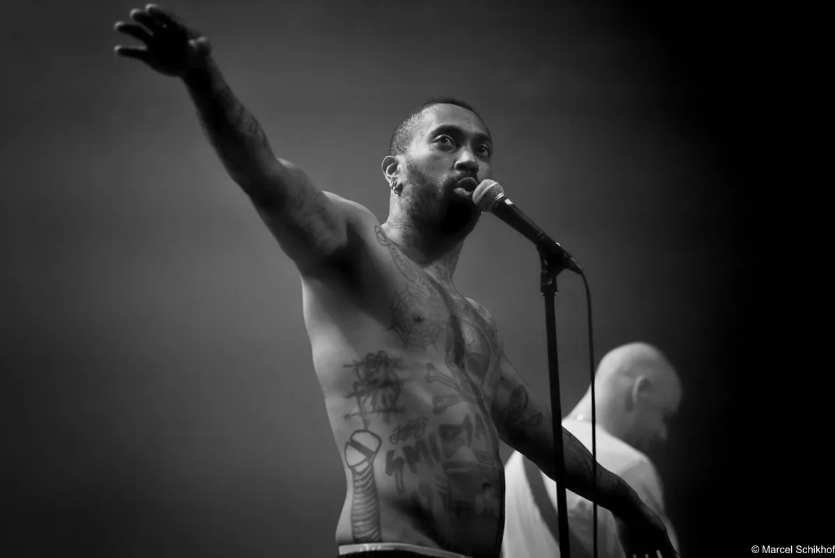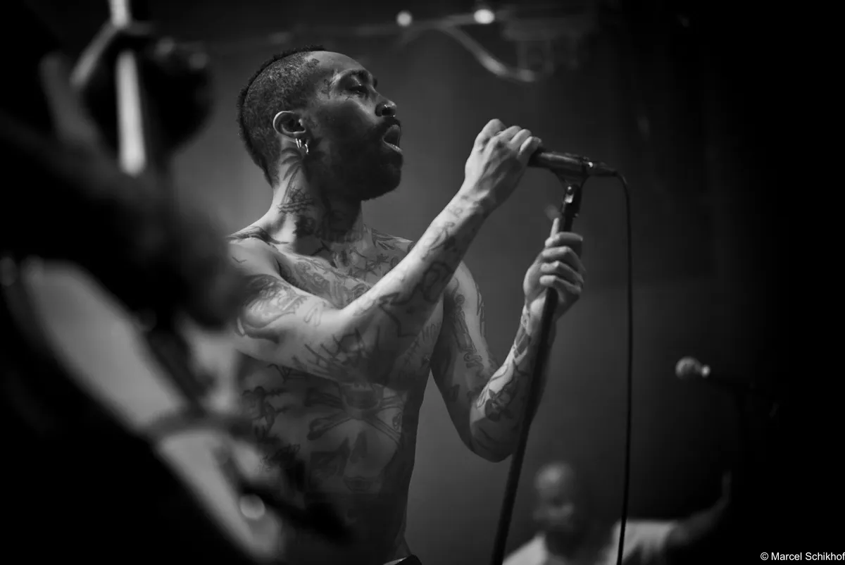 Vanaf de eerste seconde zet Fuego de zaal volledig naar zijn hand. The Smiths schallen door de speakers met ‘Please, Please, Please’ als hij naar de microfoon loopt met zijn telefoon in de hand. Hij begint een gedicht voor te dragen, maar komt halverwege even niet meer uit zijn woorden. Schouderophalend legt hij zijn telefoon weg terwijl de snoeiharde gitaar van Michiel Beffers het overneemt. Het typeert de achteloze intensiteit en het vanzelfsprekende charisma dat hij uitstraalt. Boeit hem het wat? Dit is zijn show, zijn podium.