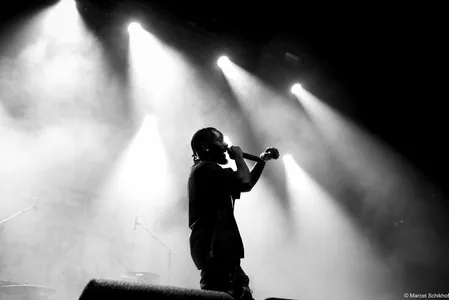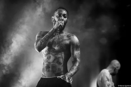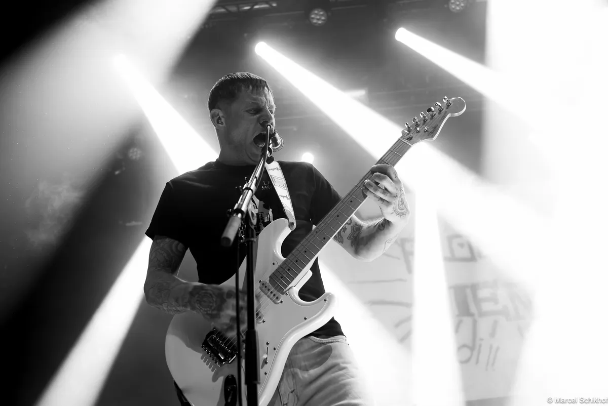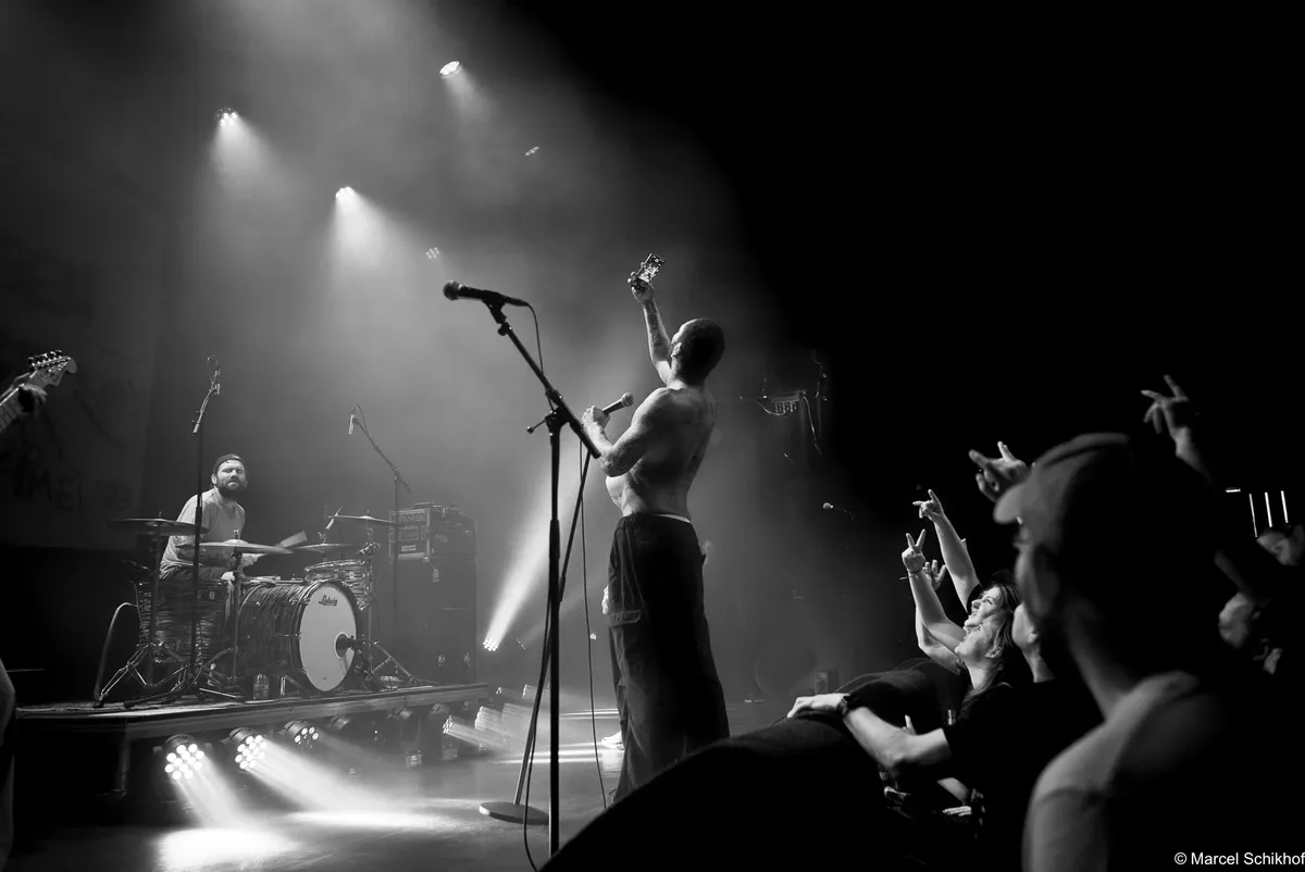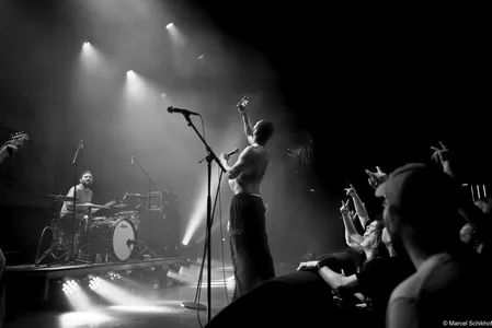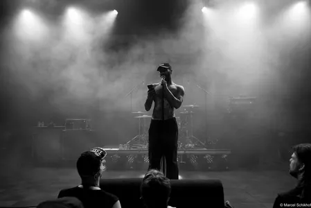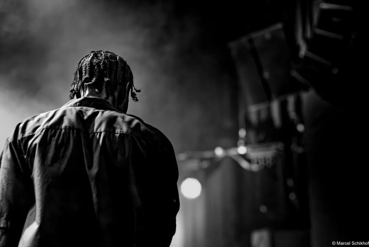 Vanaf de eerste seconde zet Fuego de zaal volledig naar zijn hand. The Smiths schallen door de speakers met ‘Please, Please, Please’ als hij naar de microfoon loopt met zijn telefoon in de hand. Hij begint een gedicht voor te dragen, maar komt halverwege even niet meer uit zijn woorden. Schouderophalend legt hij zijn telefoon weg terwijl de snoeiharde gitaar van Michiel Beffers het overneemt. Het typeert de achteloze intensiteit en het vanzelfsprekende charisma dat hij uitstraalt. Boeit hem het wat? Dit is zijn show, zijn podium.
