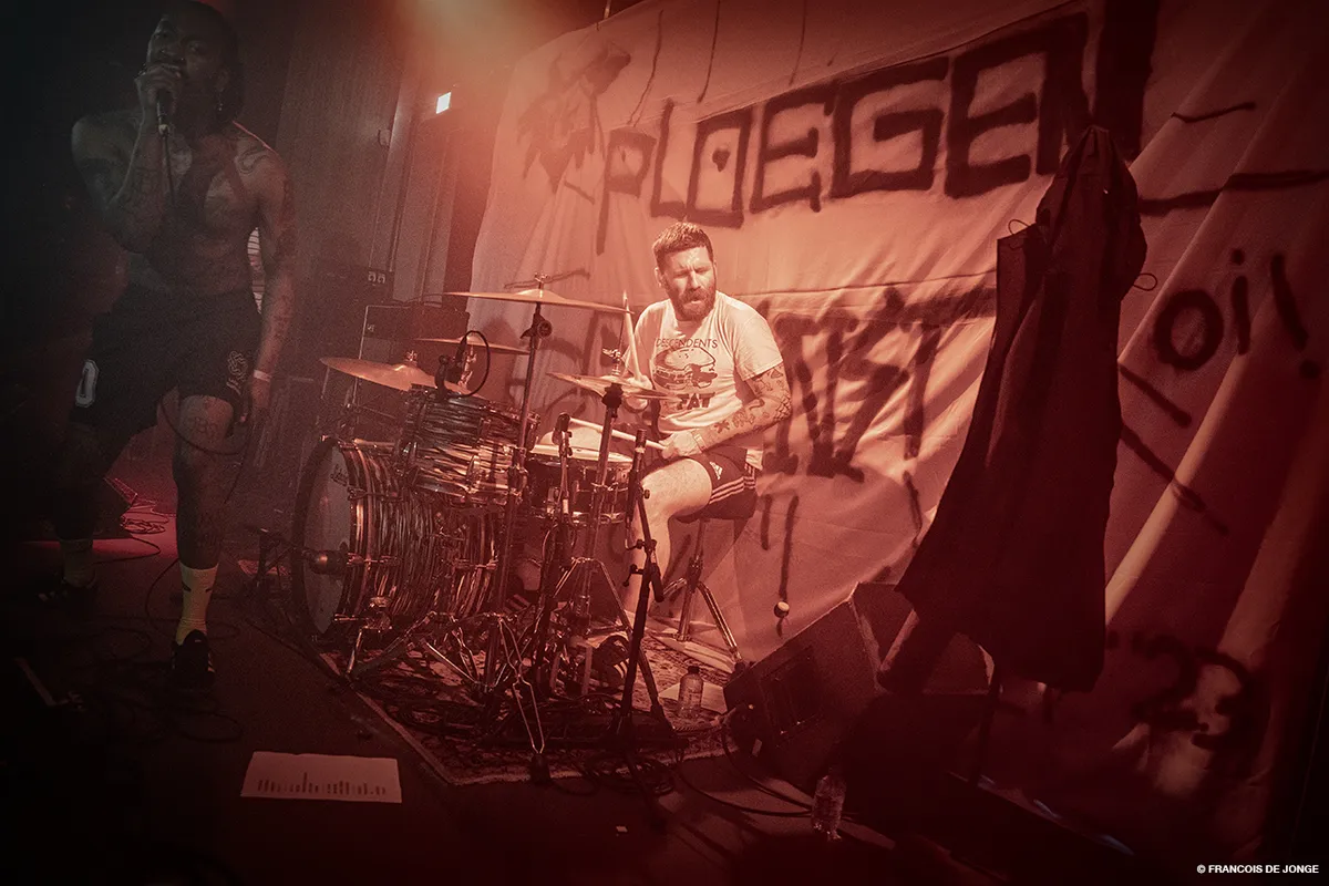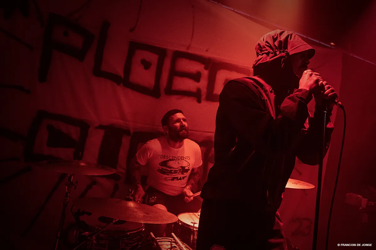 De lichten dimmen en er klinkt een vertraagde versie van ‘Schiphol’ in de zaal. Op de achtergrond zijn de gitaren nog aan het nagalmen en Ploegendienst betreedt het podium. Met rode lampen en de eerste zware drumslagen creëert de band een doemsfeer voordat het geschreeuw van het eerste nummer ‘Rattekop’ losbarst. Ploegendienst heeft vanaf het begin tot het einde de menigte in handen. Vooral als leadzanger Ray Fuego tussen de mensen duikt, wil iedereen die in de zaal aanwezig is even in de moshpit zijn geweest. Nadat Ray gestagedived heeft is het ook de beurt aan anderen. Toeschouwers klimmen één voor één het podium op om zich vervolgens weer te laten vallen tussen de springende en stotende mensen.