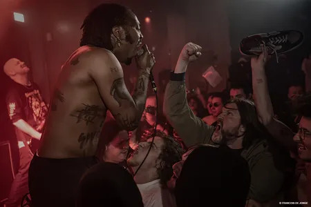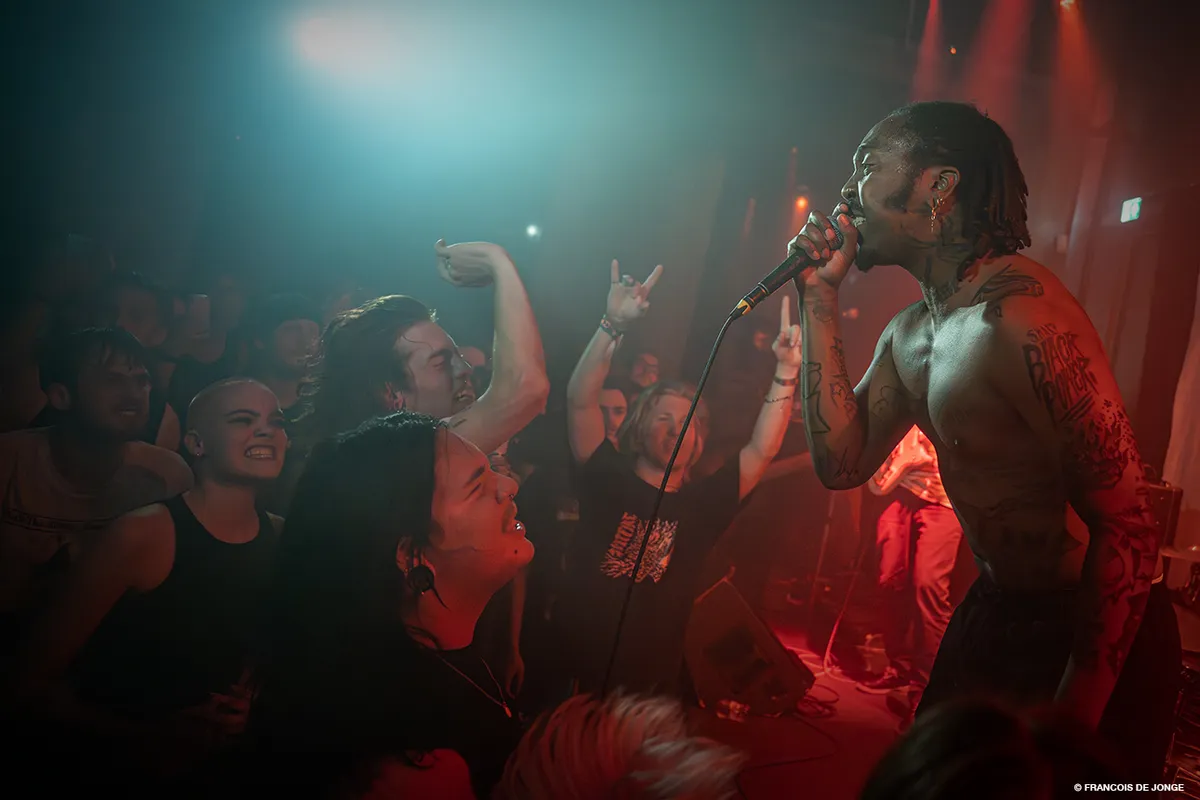 L.A. Sagne mag als eerste het podium in de kleine zaal van de Mezz betreden en laat het publiek merken wat de energie is voor vanavond. Het ontbreekt deze band niets aan tempo en exploderende korte nummers waarbij de eerste moshpits al gevormd kunnen worden. Wanneer de gitarist van de band bijna al zijn kleren uittrekt op zijn onderbroek na, en zijn sokken de menigte in gooit, is de toon gezet. Het belooft een avond te worden waar onverwachte dingen kunnen gebeuren.