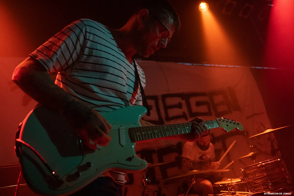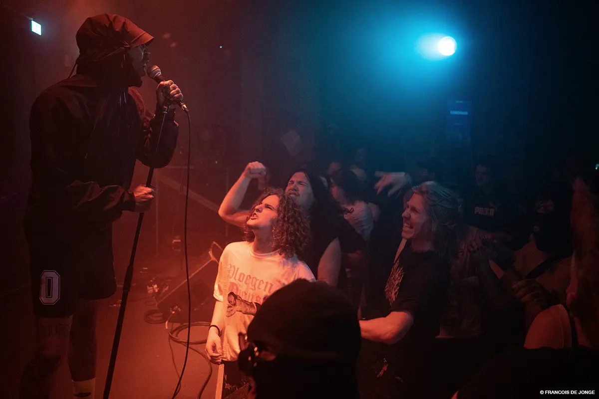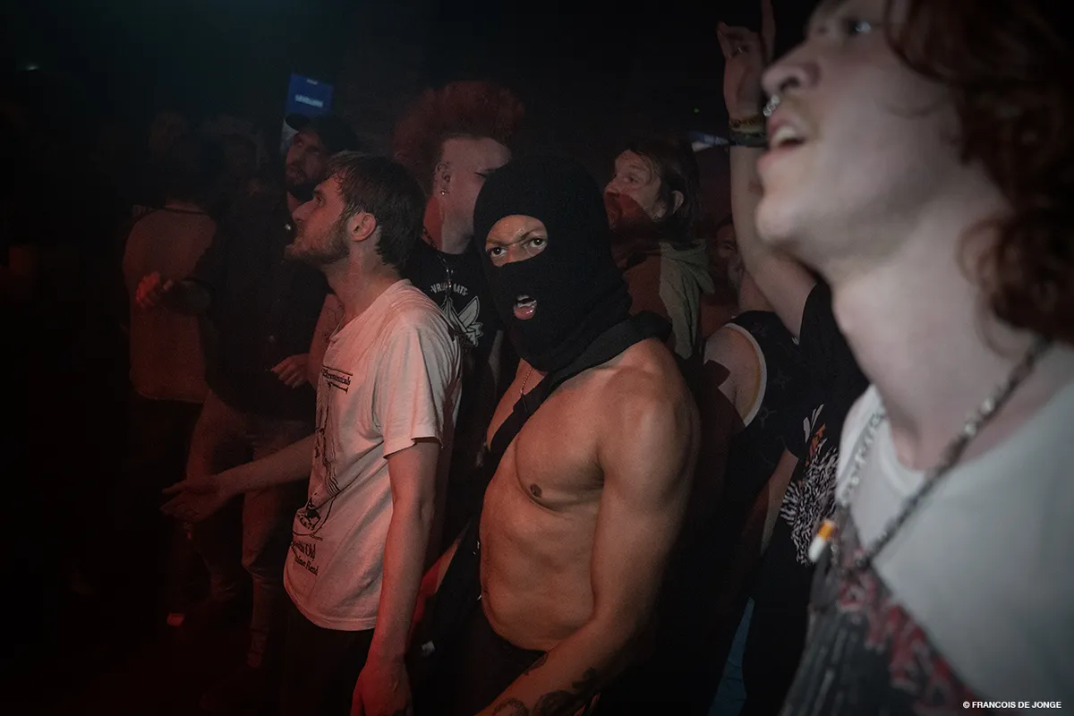 Ray Fuego pakt tijdens het nummer ‘Jellinek’ zijn telefoon erbij en vertelt een verhaal over hoe verslaving te werk gaat en hoe je vergeet wie je bent in dat soort situaties. Hierna gaat het nummer nog harder door en schreeuwt het publiek de tekst over drugsgebruik en niet af willen kicken weer vrolijk mee. Als de band het kortste nummer ‘Gore-Tex’ inzet, slaat de leadzanger hard op de drums om het af te kappen omdat hij nog wat wil zeggen. Hierna begint hij een verhaal over dat hij wil doen wat hij wil zonder dat mensen hier commentaar op hebben. “Als ik een kanker dure regenjas wil kopen, koop ik een kanker dure regenjas en moet je je bek houden!” En nu wordt het nummer wel afgespeeld.