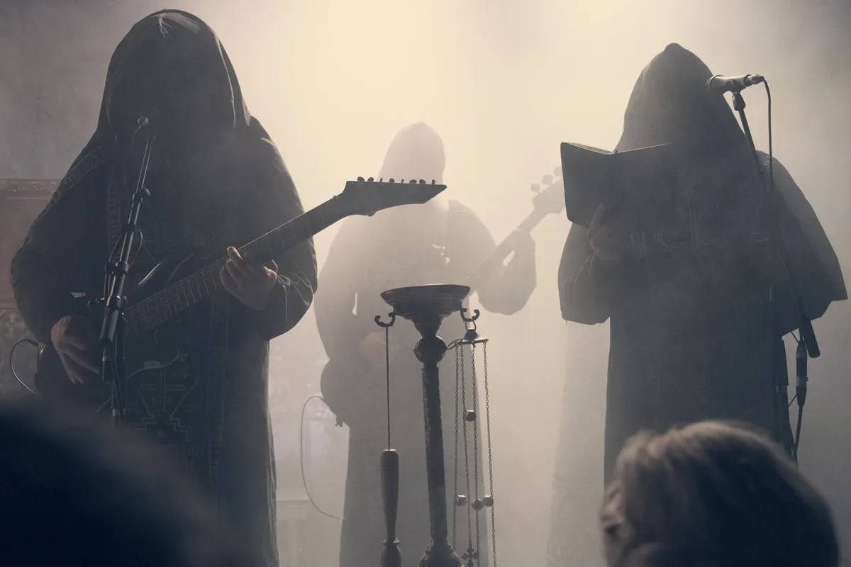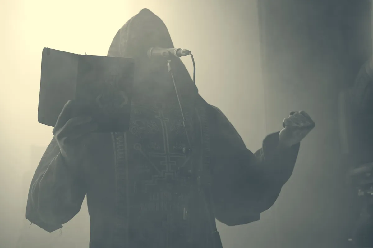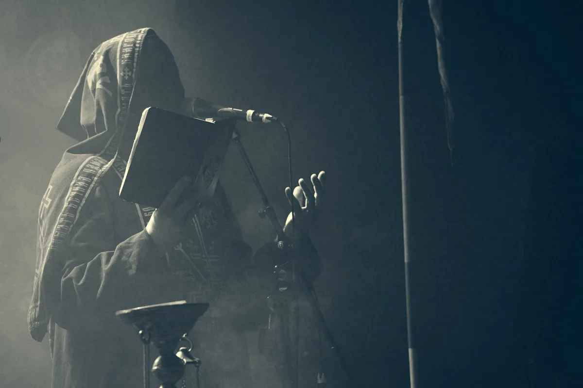 Onder gedragen, chorale klanken betreden zes monniken of priesters, het podium. Het hele programma: pijen, capuchons, maskers en zelfs blootsvoets. Met hun maskers en pijen blijven de gezichten volledig verborgen. Zelfs als ze na afloop bij de merch zouden staan, loop je ze waarschijnlijk straal voorbij.