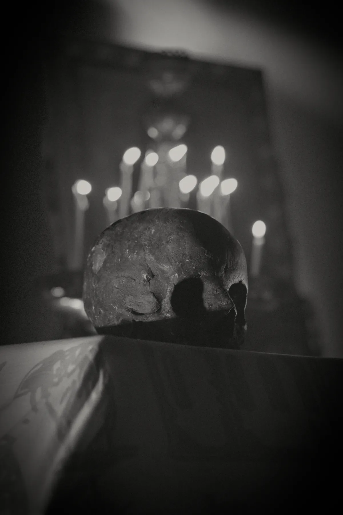 En er is een schedel die er verdacht authentiek uitziet. Wie weet mag de overgrootvader van een van de bandleden nog altijd mee op tour.