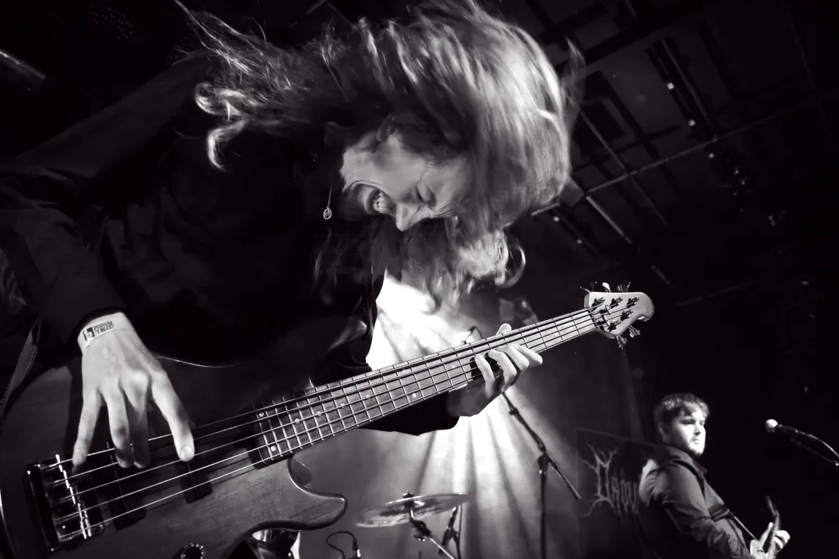 Vooral de bassist trekt de aandacht, niet alleen muzikaal. Met een kapsel dat ogenschijnlijk speciaal is ontworpen voor headbangen, zwaait hij zijn haar met bewonderenswaardige toewijding heen en weer. Na een paar nummers kun je niet anders dan concluderen dat hier sprake is van een voorbeeldig ontwikkelde nekspier.