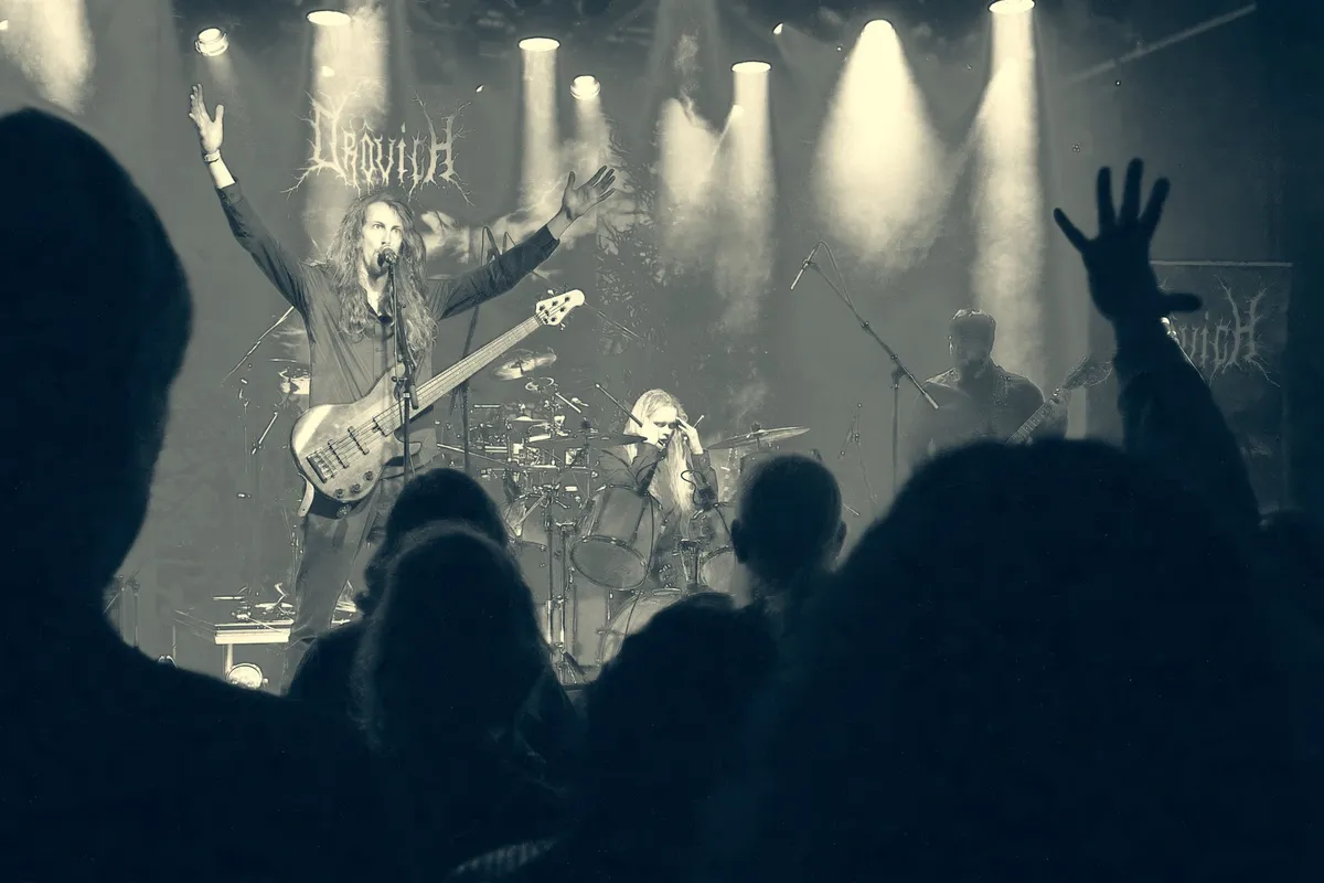 Opvallend: niemand beweegt. Op de bassist na blijft de hele performance statisch. Geen theatrale gebaren, geen rondrennende frontman. En dat geldt ook voor het publiek. Alsof iedereen onderdeel is van dezelfde mis. De kracht zit in de herhaling, in het donderen en dreunen van de muziek, de ijzige riffs en de sacrale zang in het oud-kerkslavisch.