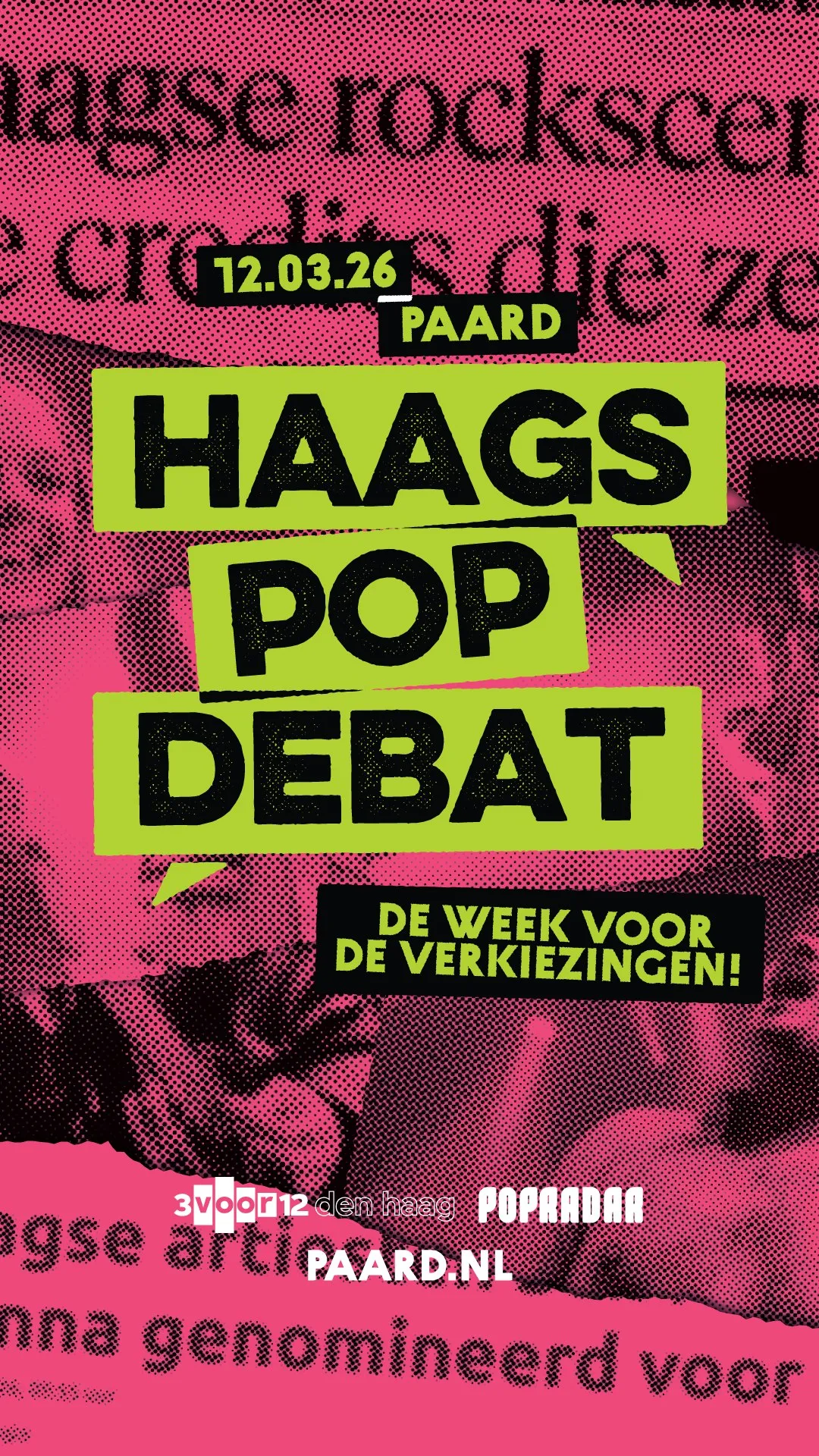 Op donderdag 12 maart organiseren PAARD, Popradar en 3voor12 Den Haag het Haags Popdebat. In PAARD gaan vertegenwoordigers van verschillende politieke partijen met elkaar in gesprek over alles wat de Haagse muziekliefhebber raakt.