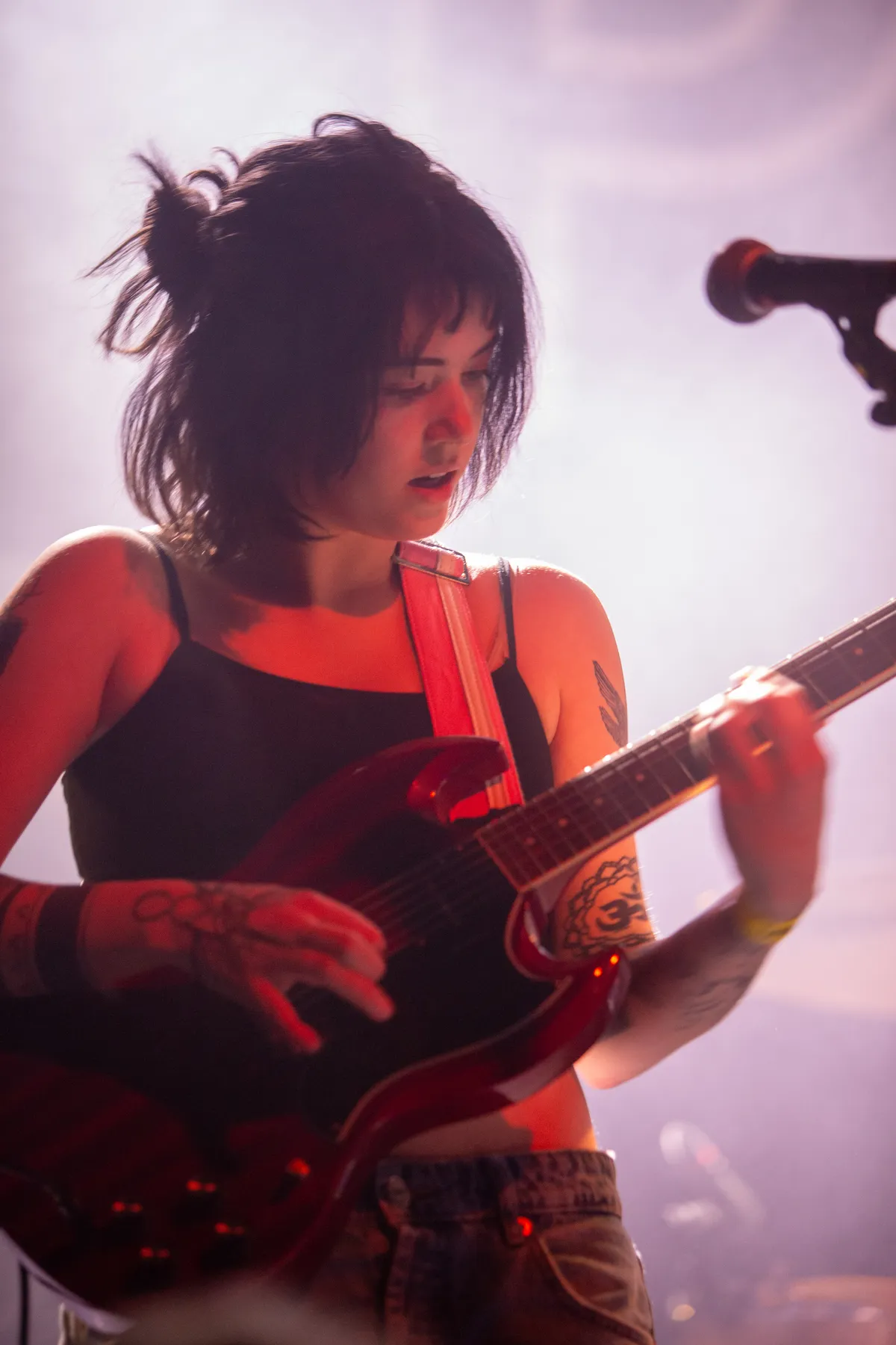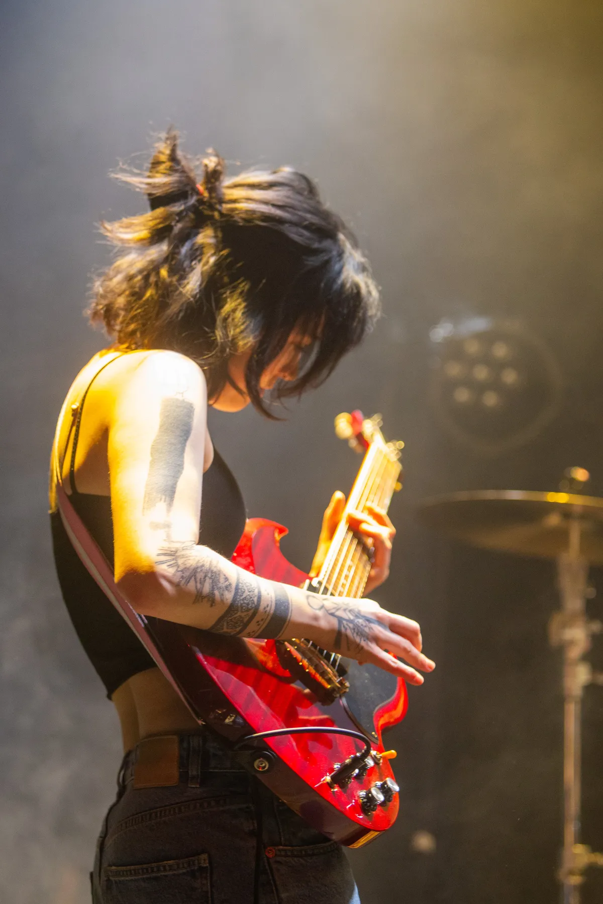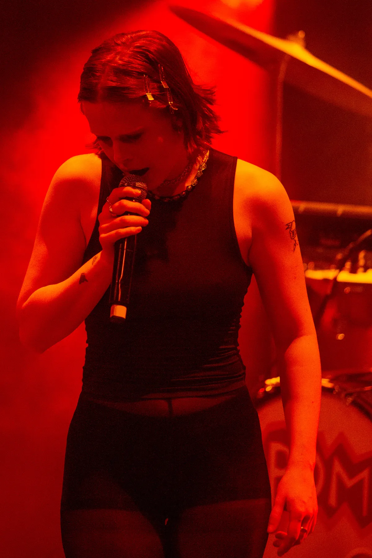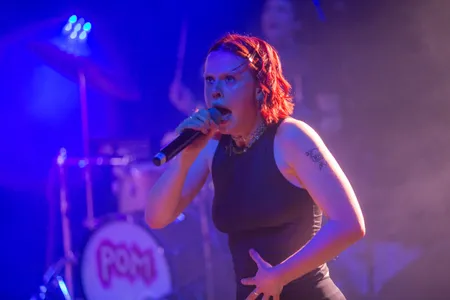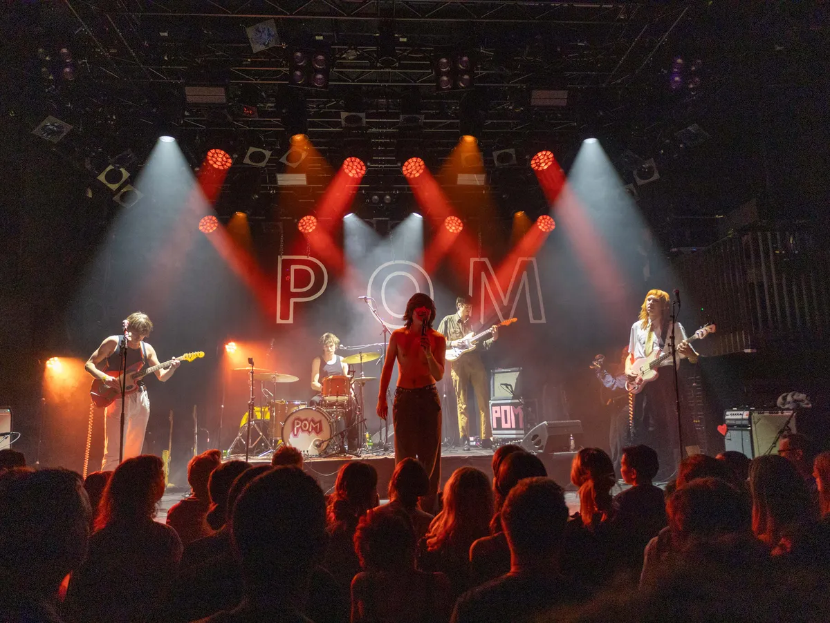 POM is als een denderende trein. Vooral Liza leeft zich behoorlijk uit op het podium. De energie die ze daarbij overbrengt op de zaal, is bijna magisch te noemen. Zwaaiend met een toverstafje en huppakee de boel komt in beweging. Zeker passend bij de kakelverse EP AAAAH! Het kan de goedkeuring wegdragen. Net als tijdens de Popronde van 2021 waar POM destijds deel van uit heeft gemaakt en ook bij dat optreden in de kleine zaal van Patronaat Haarlem, is er een aantal malen een moshpit waar te nemen. Als dat gebeurt weet je als band dat de zaal het naar de zin heeft. En voort raast de denderende trein die POM heet. Scheurende gitaren in een strak en snel ritme en waar het zelfs naar een kookpunt gaat. POM weet er wel raad mee.