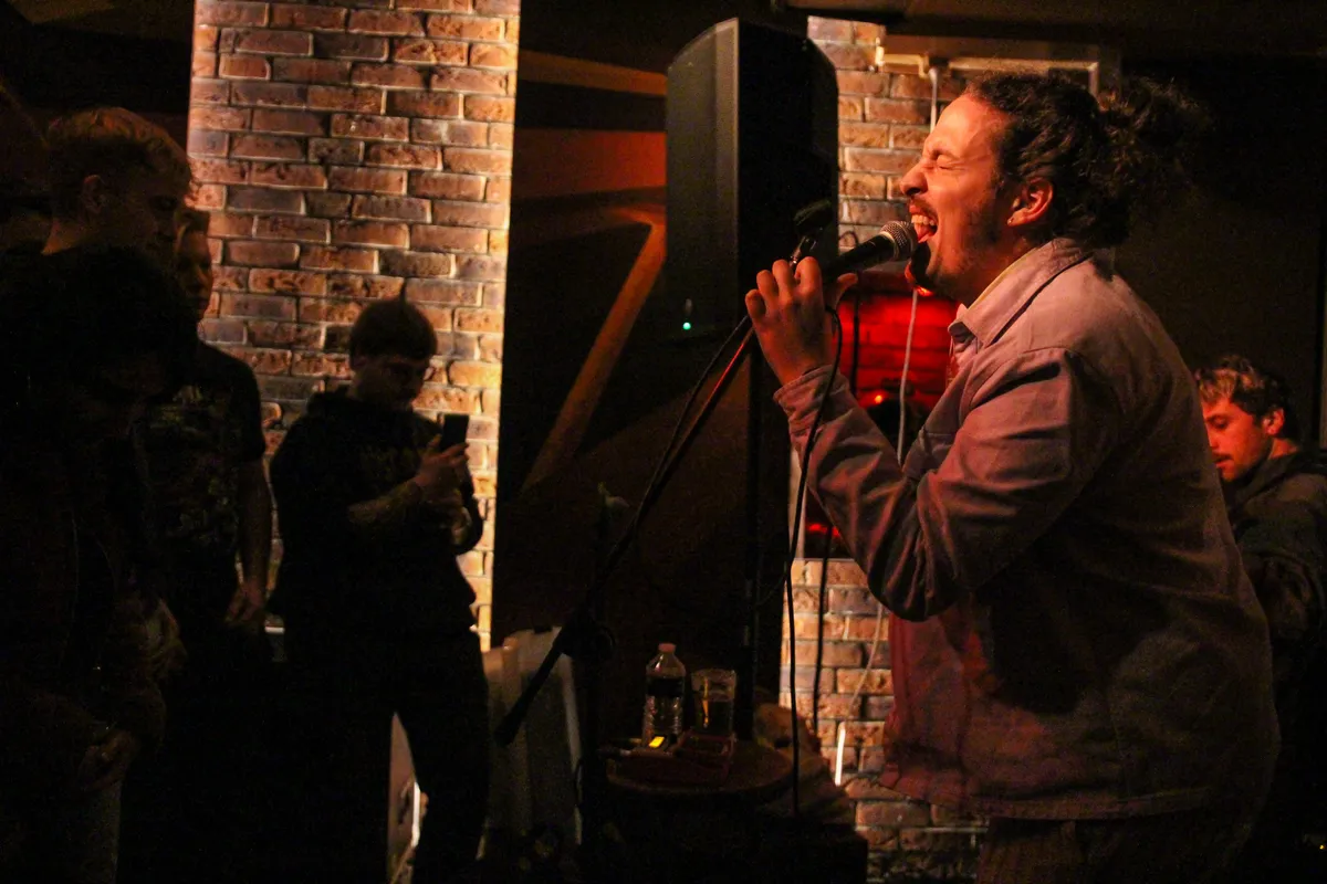 Buiten is het fris, maar in Café Bolle zou je zeggen dat het zomers is. Dat ligt niet alleen aan de hoge temperatuur, maar ook aan de zomerse, weinig-aan-de-hand-indiepop van Amsterdammer Nicolaas die in een vorig muzikaal leven nog Nils Käller van boyband Mainstreet was. Nu brengt hij met een vijfkoppige band (de ‘Hondos’) puntige popsongs die *checkt de Popronde-bio* muzikaal zou moeten worden omschreven als Mac DeMarco meets Harry Styles. Styles: mwah, Mac? Als hij door een wasstraat werd geduwd en een goede manicure en pedicure kreeg, dan wel. Nicolaas brengt een gepolijste sound waarbij amper een mineurakkoord is te bekennen, goede tremolo op de gitaar zit en een prettige afwisseling in tempo tussendoor het geheel fris houdt. Wel mag er nog worden gewerkt aan de kopstem van Nicolaas die soms moeite heeft met de hoge regionen. Moeite heeft de drummer ook af en toe met in de maat blijven en ja, Lou Reed’s ‘Walk On The Wild Side’ is helemaal onherkenbaar in een uptempo-coverjasje, maar waarom dan niet meteen er een eigen tekst voor bedenken? (BVD)