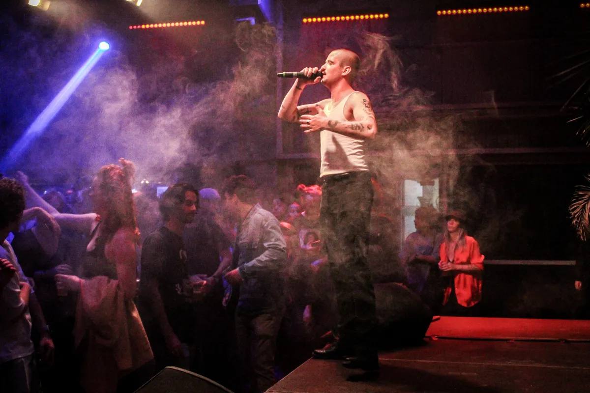 Er hebben zich flink wat mensen gemeld bij Club Smederij waar Q’n de nacht zal aftrappen, de Veghelse rapper zou eigenlijk niet op Popronde Tilburg staan maar twijfelde geen moment toen hij gevraagd werd of hij wilde invallen voor Smitty. De Rockacademie student werd vorig jaar al ontdekt door Ares, die hem vroeg om als eerste bij zijn label 162 Records te tekenen en vanavond laat hij zien waarom. Het hyper emotionele en recent uitgebrachte ‘Stereo’ is een prachtige track waarin hij rapt over de donkere tijden die hij gekend heeft en tijdens het vlijmscherpe ‘Zilveren Tranen’ laat Q’n zien een behoorlijk staaltje hard te kunnen spitten. Hij trakteert ons nog op een nieuwe track waarvoor de lichten gedempt worden: ‘DIt nummer gaat erover dat je eerst van jezelf moet houden om van iemand anders te kunnen houden’, tekstueel zit het sterk in elkaar en de passie waarmee de rapper het brengt komt recht vanuit het hart. Afsluiten doet hij in stijl: crowdsurfend en moshend tussen het publiek. Zelfliefde en liefde voor elkaar is de rode draad hier vanavond: ‘Mag ik een applaus? En niet voor mij, maar voor je motherfucking zelf! Iedereen mag er zijn, hou van jezelf.’ Q’n speelde een thuiswedstrijd en heeft ‘m ruimschoots gewonnen. (RZ)