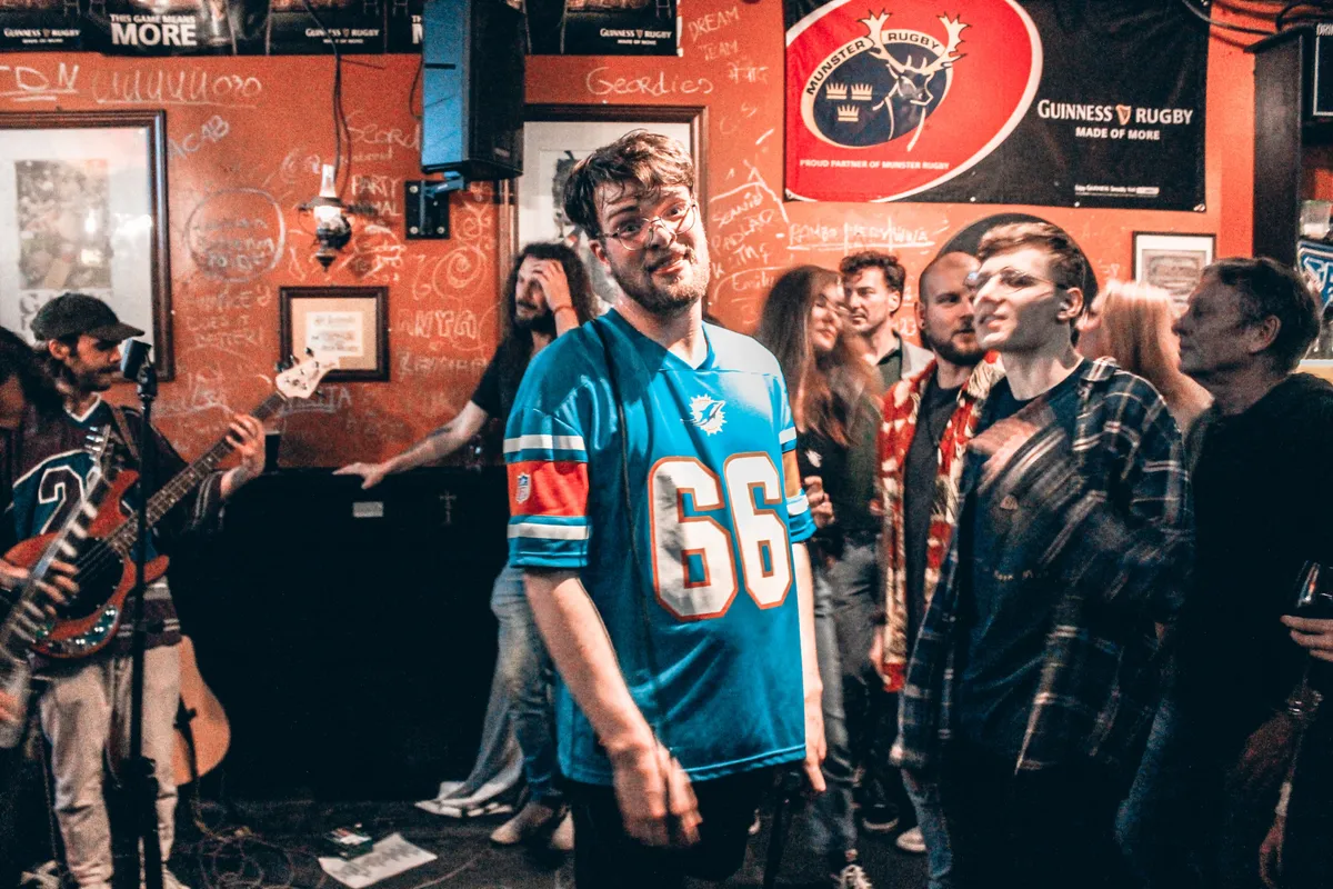 We staan hier voor een paar heren die al een behoorlijk tijdje meedraaien; A Minor Problem bestaat namelijk al 8 jaar. Alle leden dragen een sportshirt en al snel wordt duidelijk waarom; de schurende poppunk en goed gevulde Irish Pub vormen de perfecte formule om te moshen en zweten tot je erbij neervalt. Het van de week uitgebrachte ‘Birds’ en meest gestreamde track ‘Overthinking Brain’ zijn twee snoeiharde nummers die de hyper energieke sfeer in de Ruby’s volledig omarmt. Frontman Dean Vrösch kruipt bijna elk nummer het publiek in, kijkt de mensen eens goed aan, klimt tweemaal op de bar waar hij later ook nog besluit vanaf te stagediven. Je zou de drummer, twee gitaristen en bassist achter hem, die hier en daar wat technische problemen ervaren maar een minstens even sterke show staan te spelen, bijna vergeten. Ademruimte krijgen we bij het nummer ‘The Fire’, althans dat denken we; het nummer begint met een folky akoestische gitaar maar barst al snel weer los en later in het nummer worden we getrakteerd op een heerlijk meeslepende gitaarsolo. Als klapper op de vuurpijl gooit de band er nog even een poppunk versie van 4 Non Blondes’ ‘What’s Up’ tegenaan die door de hele Ruby’s luid meegezongen wordt. (RZ)