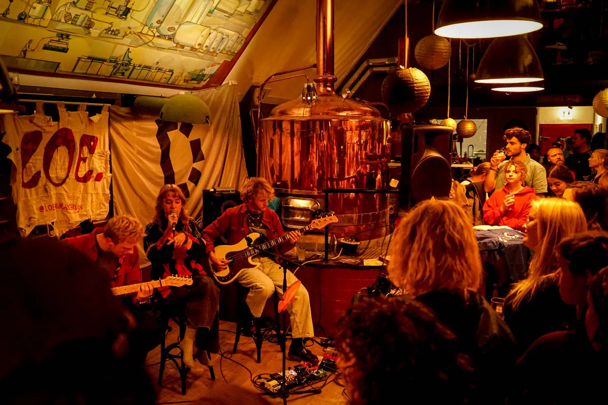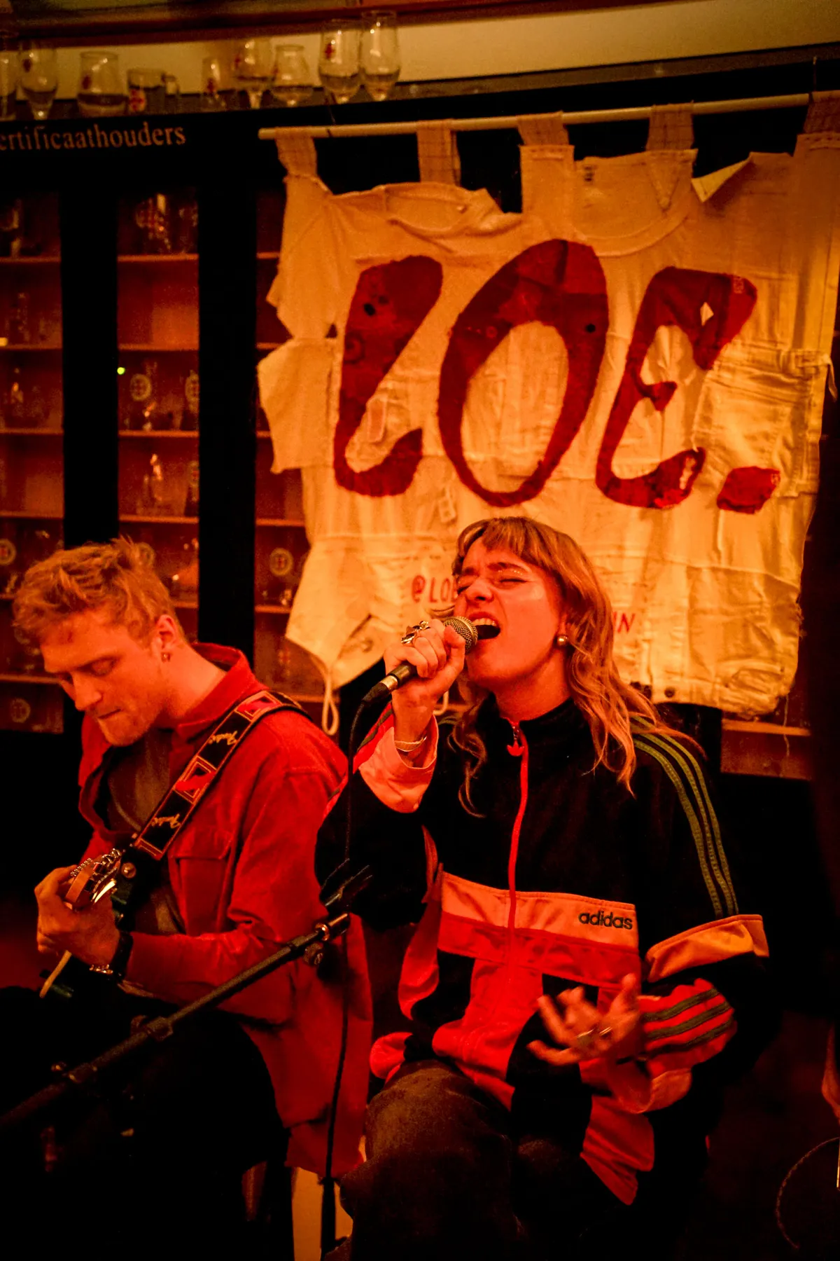 De avond begon bij Stadsbrouwerij De Drie Ringen, waar LOE. op haar sokken de kroeg had omgetoverd in haar woonkamer en iedereen die op bezoek was luisterde huiverig naar wat zij te zeggen had. LOE. speelde met dynamiek en stilte, met zachte aanrakingen en uitbarstingen. Haar nummers zijn verhalen die binnenkomen alsof je oude herinneringen terughoort. Soms fluisterde ze, dan weer ontplofte haar zang in een golf van emotie die de hele ruimte vulde met nummers zoals ‘stem van de zee’. Het publiek hing aan haar lippen en de kleine woonkamer versterkte de intimiteit.