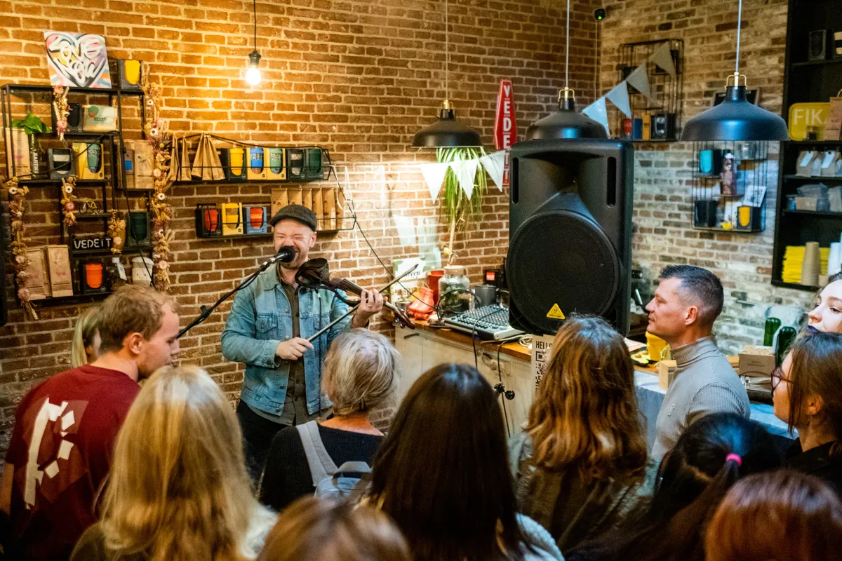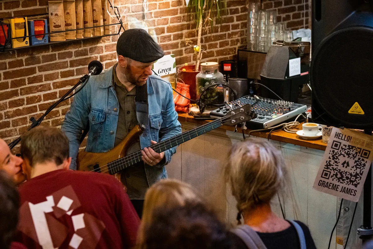 Als we het Koffiepand inlopen is het al erg druk in de koffietent. Graeme James is nog bezig met zijn soundcheck maar hierin neemt hij zijn publiek gewoon lekker mee! Het publiek wordt getrakteerd op een viool versie van 'Rockafeller Skank' van Fatboy Slim. Het dak is er direct vanaf. De Nieuw-Zeelandse James speelt met een loop-pedaal alle instrumenten, van gitaar en bas tot viool. Als hij aan het eind van de set het publiek verrast op een folk versie van The Vengaboys is het feest compleet. Het volle Koffiepand staat niet stil en eindigt zelfs in een polonaise!