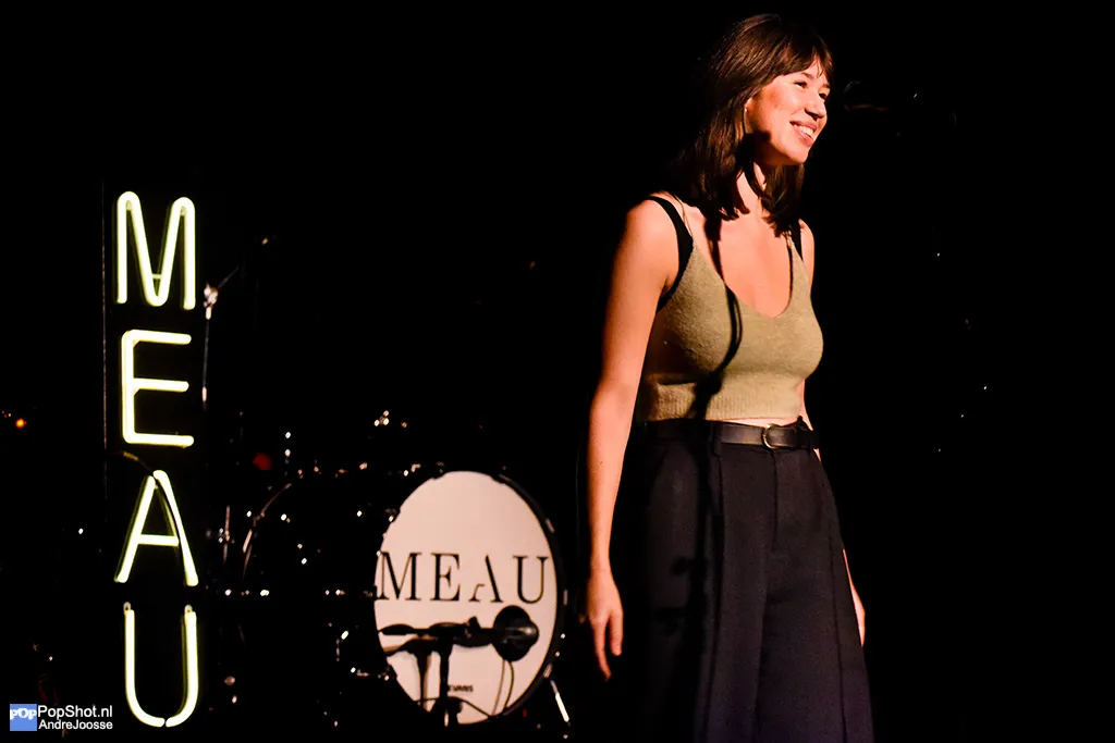 MEAU (Meau Hewitt) staat in Poppodium De Spot met haar band voor een volle zaal. Vorige week stond deze zangeres nog in het voorprogramma van Suzan en Freek in Antwerpen. Ze heeft inmiddels 60 duizend streams met haar single ‘Dat heb jij gedaan’ en veel airplay op onder andere radio NPO 3FM. MEAU maakt toegankelijke Nederlandstalige popballads aangevuld met wat elektrobeats. De goedlachse zangeres kleurt allemaal erg binnen de lijntjes, al deert dat weinig mensen.