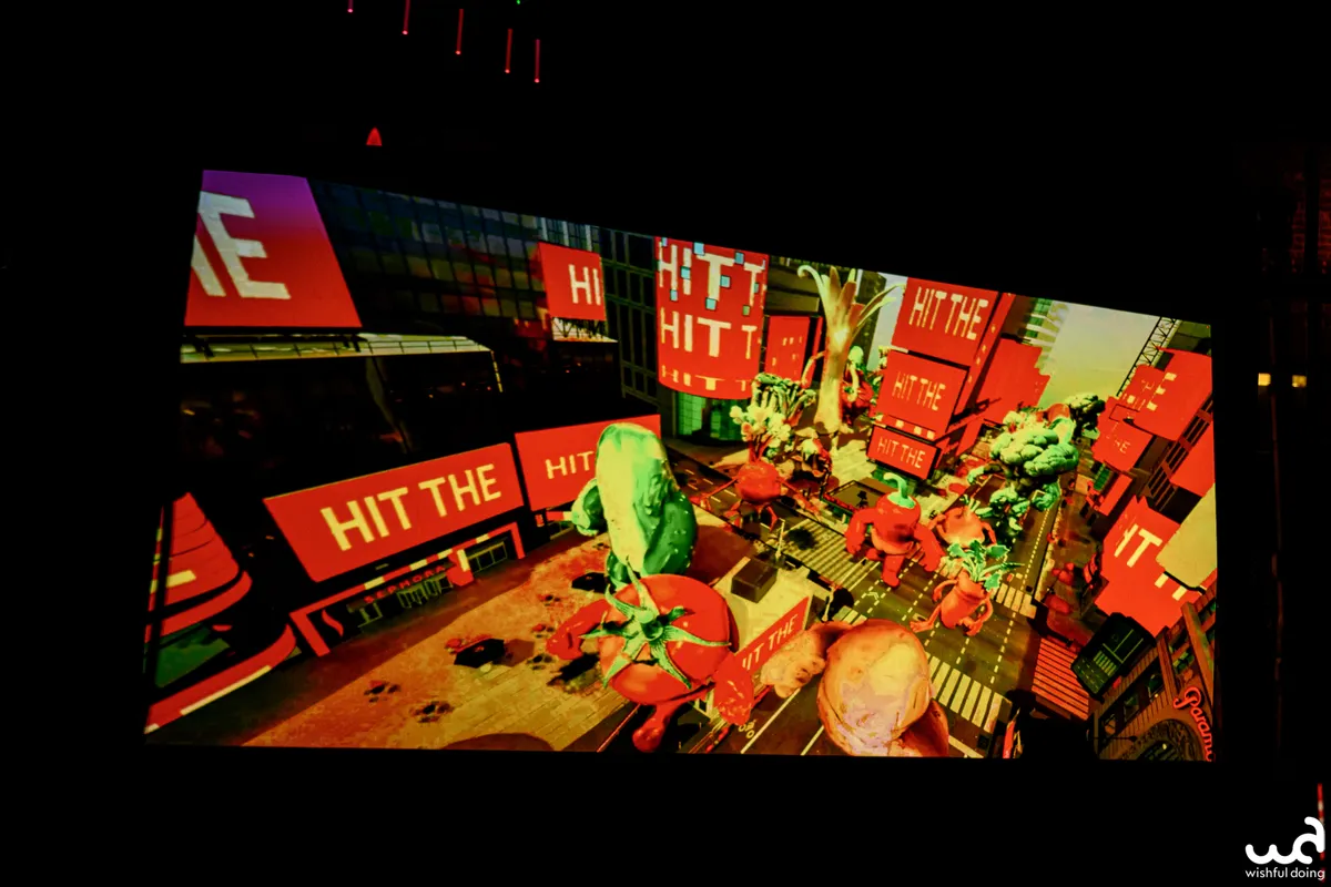 Achter hen speelt een scherm trippy 3D-animaties van lage kwaliteit af met veel verwijzingen naar hun eigen muziekvideo's en internetcultuur, wat veel toevoegt aan hun ‘cringy’ y2k-imago. Hun nummers bevatten vaak verwijzingen naar rare Poolse internetmemes. Tijdens ‘BOBER (WHO AM I)' speelt hun muziekvideo af op het scherm inclusief Engelse ondertiteling. Dit nummer verwijst naar een Poolse meme en gaat over een bever, die achterna gezeten wordt door een man en onverwachts in een existentiële crisis geraakt. Humor in een emotioneel jasje dus.