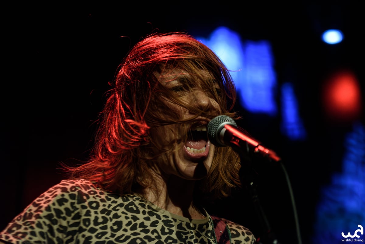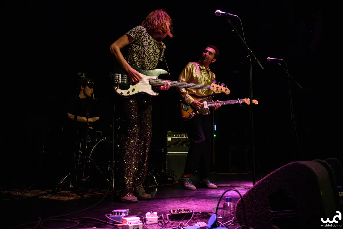 De glimmend geklede gasten van Lelee brengen deze avond een momentopname van plaats en periode met zich mee: Joegoslavische new wave uit de jaren ‘80, met indie invloeden gespekt. De combinatie bas, gitaar en drums is wat minder exotisch dan sommige andere acts. Het trio past zeker in een hokje, maar ondertussen bonken ze wel lekker hard op de muren. Het vreugdige enthousiasme spat er vanaf, met een drummer die de tekst meezingt alhoewel hij geen microfoon heeft, en de bassiste en gitarist buigen als rietjes tijdens het spelen. De effectpedalen zijn beknopt, de thema’s voor zover ze na afloop te achterhalen zijn de gebruikelijke mix van plezier en anti-establishment ethos, en de liedjes vliegen voorbij voordat je er erg in hebt.