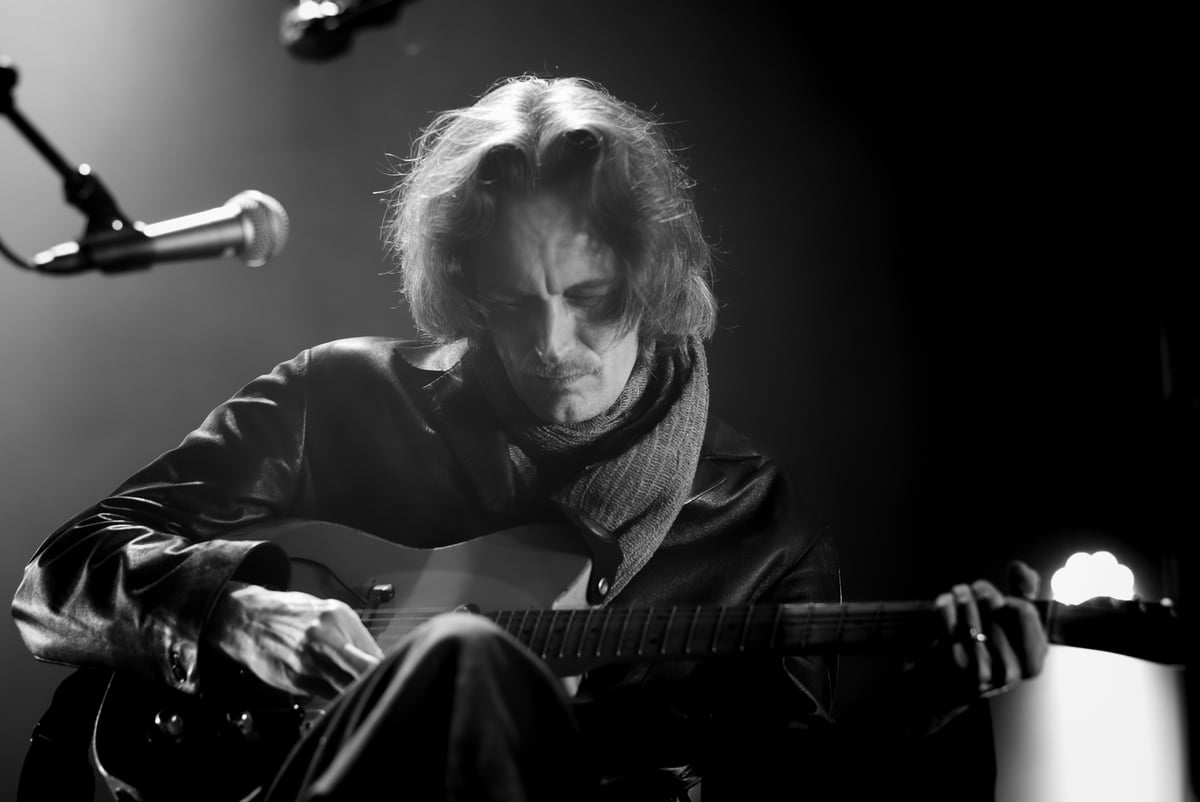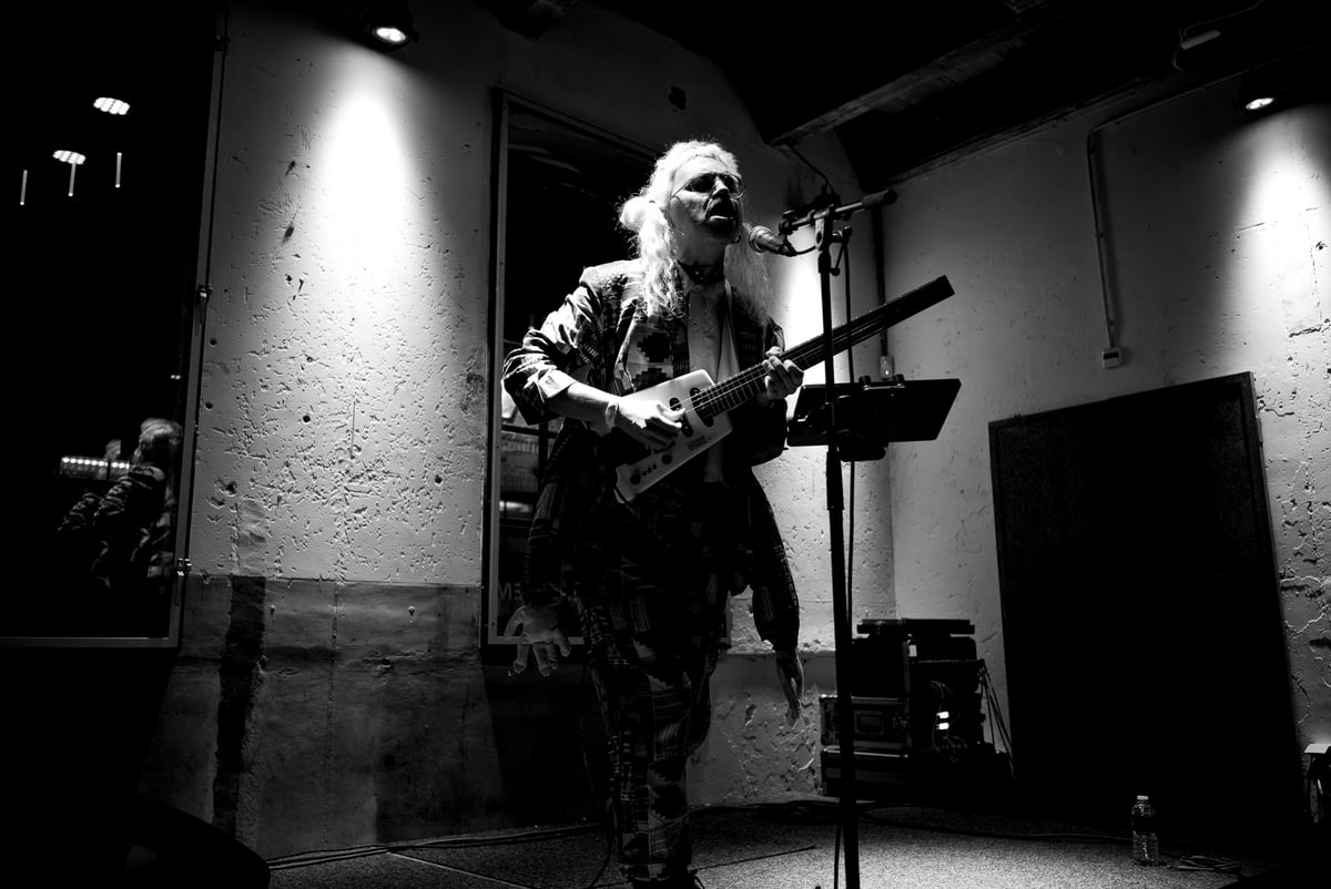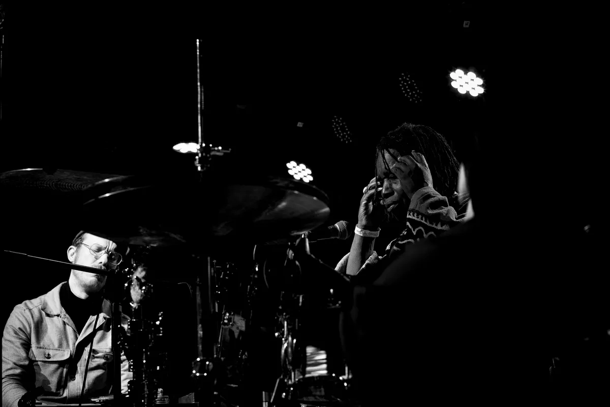 Tijdens de voorstelling (want dit is niet alleen een concert) danst Julián regelmatig als een gepijnigde, geesten bezwerende sjamaan, de handen ten hemel geheven. Hij roept iets in het Spaans in een minimegafoon, laat die vallen, shredt en schreeuwt intens, danst met zijn als castagnetten schuddende handen boven en onder zijn hoofd, rent over het podium heen en weer. Zoals je aan de ademloze opsomming merkt: Julián is een energiebom die eindigt met ontbloot bovenlijf en bezweet voorhoofd.