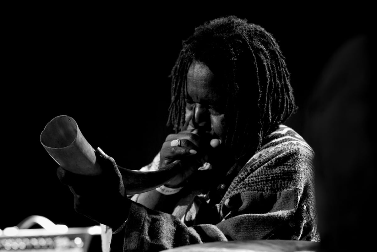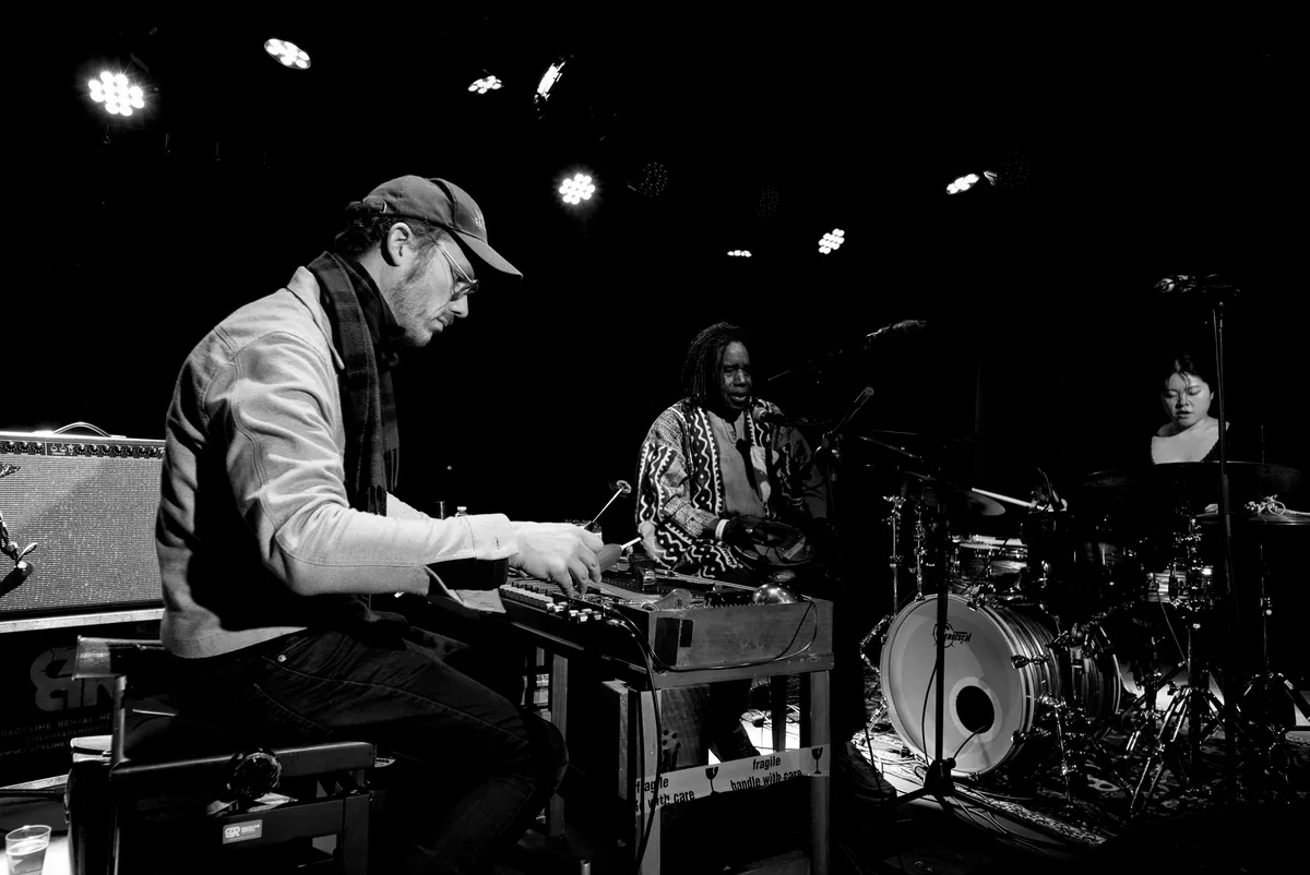 Hoogland wendt hiervoor alledaagse gebruiksvoorwerpen aan, zoals bijvoorbeeld een draaiende melkopschuimer of een tuimelend metalen schaaltje. Dit is op zich al een belevenis om te zien en te horen, maar voeg daarbij nog de ritmische, verhalende griotzang en percussie van Mola Sylla en het strakke, veelzijdige spel van jazzdrummer Sun Mi Hong en er ontstaat helemaal een unieke mix. Sylla laat ons kennismaken met traditionele Afrikaanse percussieinstrumenten, zoals de m’bira, een instrument met metalen tongen op een klankbord, en de xalam, een soort smalle luit met drie snaren.