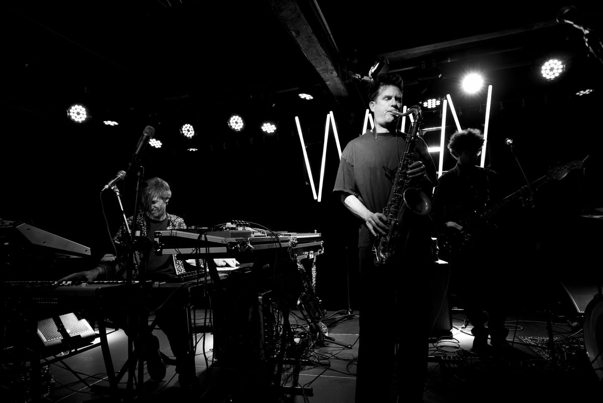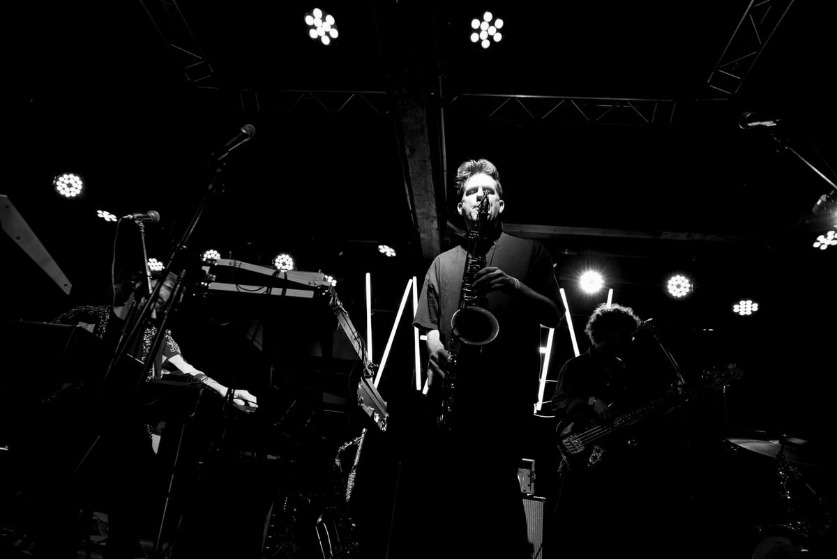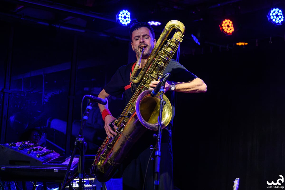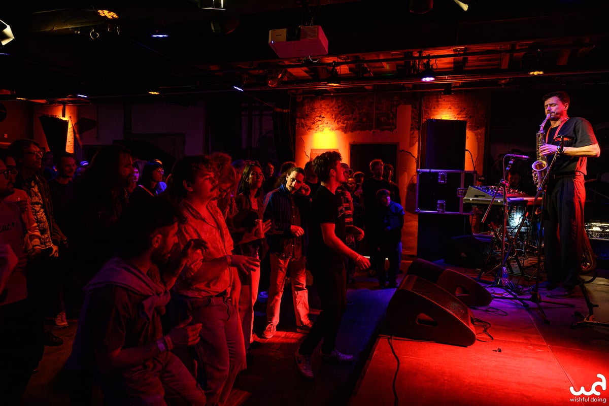 Lange intro, maar daar houdt de band zelf ook van. De muziek laat zich kenmerken door de smoothe sax van Bart, omlijst door sfeervolle toetsen, drums en bas. Het is lichtvoetig en lonkend, nostalgisch en hoopvol, en weet precies de verzadiging af te bouwen op momenten dat het wat wattig wordt. De neonletters met de initialen van de plaat gloeien op aan het einde, terwijl achter me een select setje bezoekers in een soort groepsknuffel danst. Er is ook plaats voor het soort priegelwerk met de sax dat het talent van één van de oprichters laat zien, maar voordat ie te lang in de spotlight kan staan stort de rest van de heren een bak aan drums en synths over de zaal uit. Ze trekken alle klanken uit de kast, want laat het duidelijk wezen dat de avond niet in lounge gaat eindigen. (BK)