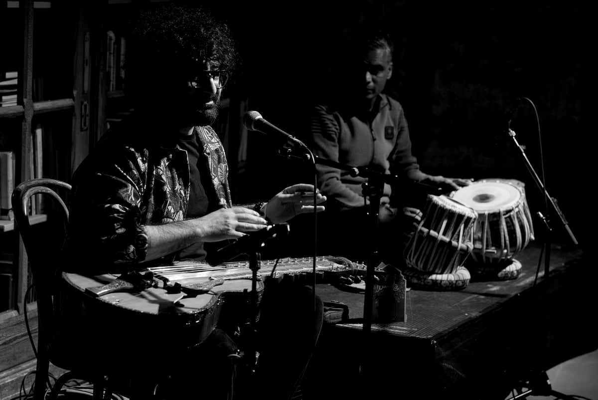 M10 is een kwartier voor aanvang al erg vol, zelfs nu de organisatie heeft gezorgd voor extra staruimte. We zien een bijzonder snaarinstrument in een standaard staan: eentje met zes snaren en een vioolachtige klankkast. Hamid bespeelt deze kruising van een lap steel guitar en Indiase slide guitar bij het slotnummer, waarbij hij van bovenaf meerdere snaren aanslaat. Hij zingt er een beschouwend-klaaglijk lied bij.