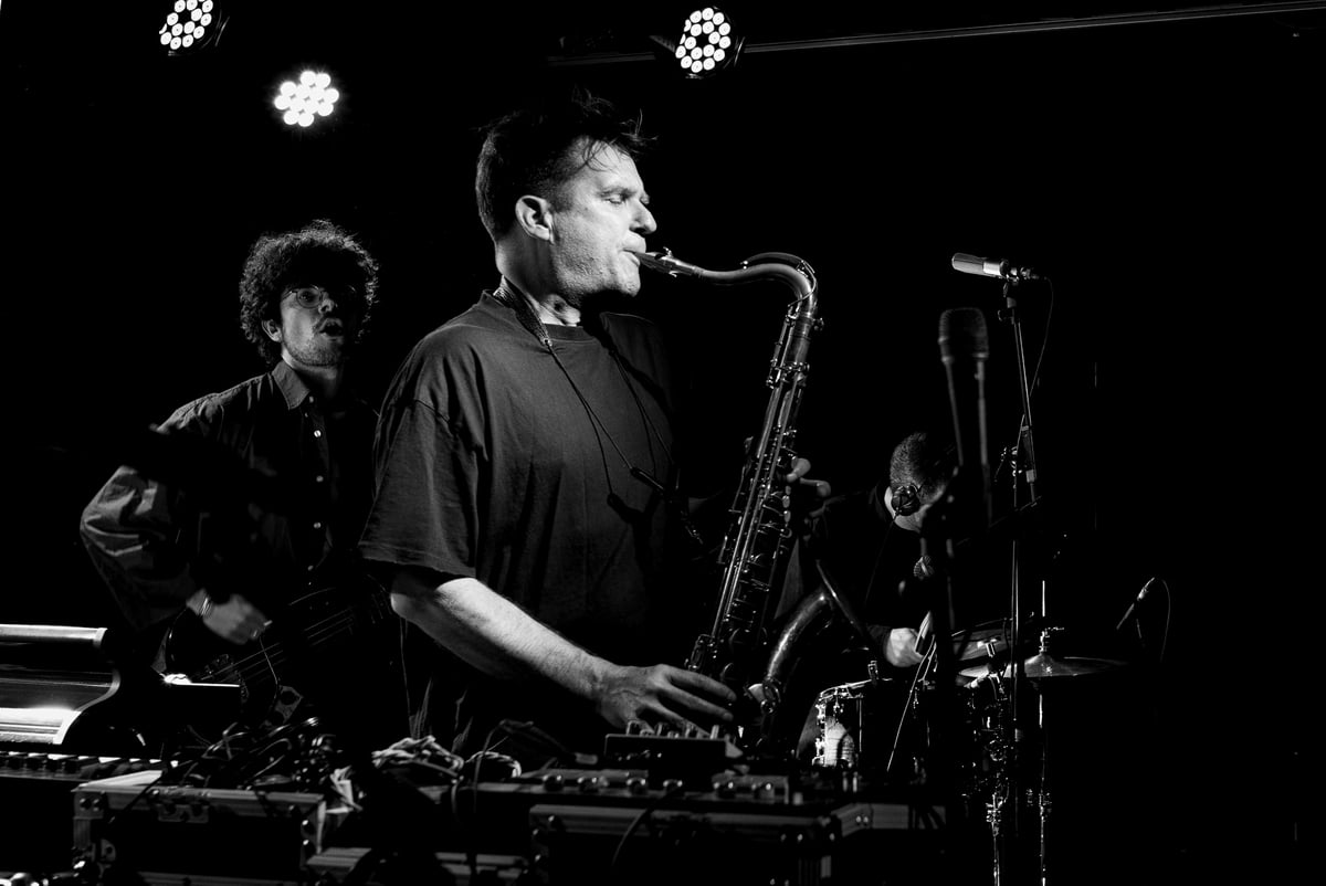 Syndroom van festivalomschrijving: wanneer een bandbio zoveel invloeden noemt dat je onmogelijk kan zeggen hoe het gaat klinken. Vaak gedaan vanwege de makkelijke marketing, maar bij Głupi Komputer valt het ook duidelijk aan te wijzen wat waar aansluit. De bandnaam betekent “Stupid Computer”, zegt één van de lieden op het podium. De act is expres low-tech, met bliepjes en bloepjes alsof ze een Atari ritueel offeren. Toetsen, Polyvox en overige elektronisch kastjes vallen te verwachten, maar het meest opvallende is toch wel de XXL saxofoon die tevoorschijn wordt getoverd. Bas-sax heet deze, en het instrument wordt afgewisseld met de veel kleinere alt-sax, soms tijdens hetzelfde nummer.