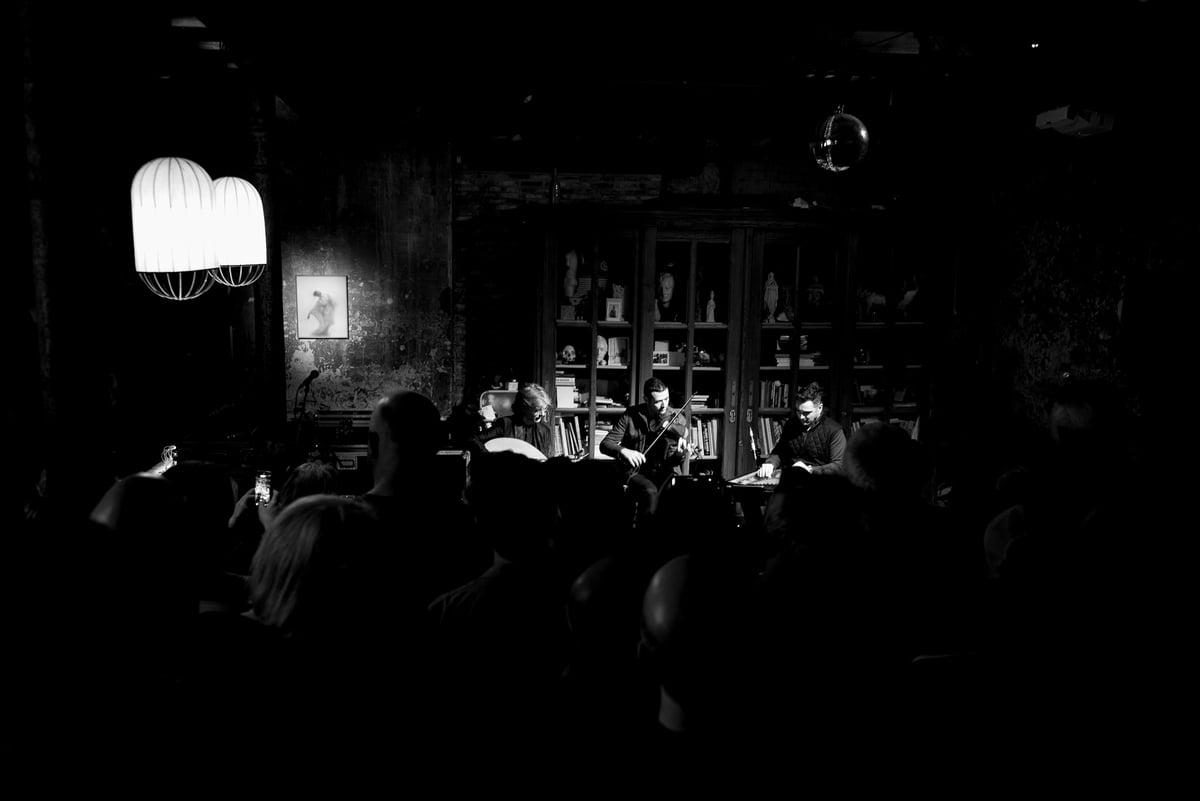Op dit festival draait het om het beleven van muziek in verschillende vormen. Ook muziektheater en zelfs filosoferen over muziek. Daartoe nodigt het Leidse muziektheatercollectief KASSETT ons uit in hun speciaal voor Peel Slowly And See gemaakte editie van hun KASSETTKafé. Deze interactieve voorstelling spelen ze deze avond drie keer in de foyer van de Nobel. Wij schuiven aan bij de derde, laatste ronde van vanavond, waarbij helaas tot twee keer toe een leeglopende concertzaal voor storende ruis zorgt.