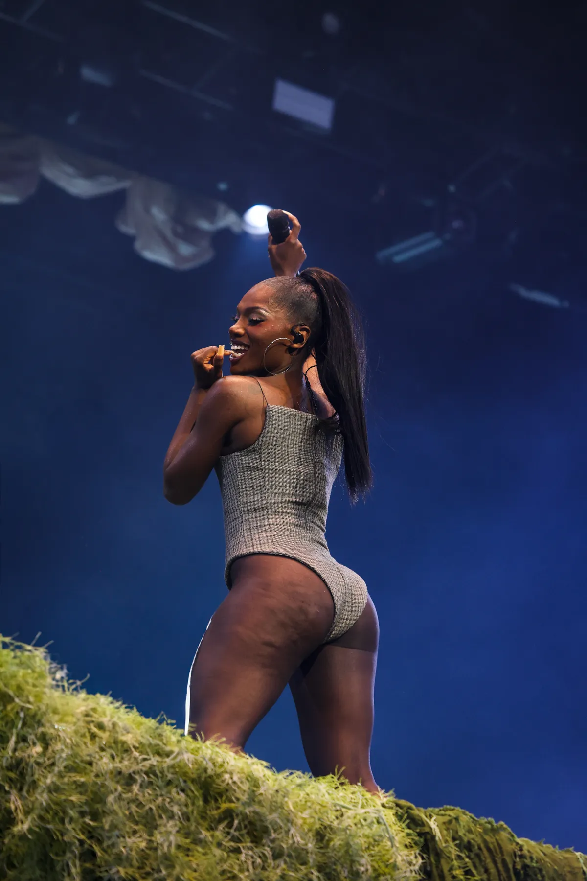Doechii dus. Sinds haar legendarische Tiny Desk-concert en de openlijke lof van Kendrick Lamar schoot haar ster als een vuurpijl de lucht in. Festivals wereldwijd wilden haar strikken, maar in de Benelux was het Pukkelpop dat het eerst toesloeg. Wat we kregen: een fenomeen. Jaylah Ji’mya Hickmon (haar echte naam) stapt het podium op met een joint in de rechterhand, geklemd tussen nagels die langer zijn dan de boulevard van Oostende. Vergezeld door Prada-hakken en een lijf vol glitter is het veld vanaf eerste song 'Nosebleeds' volledig mee.