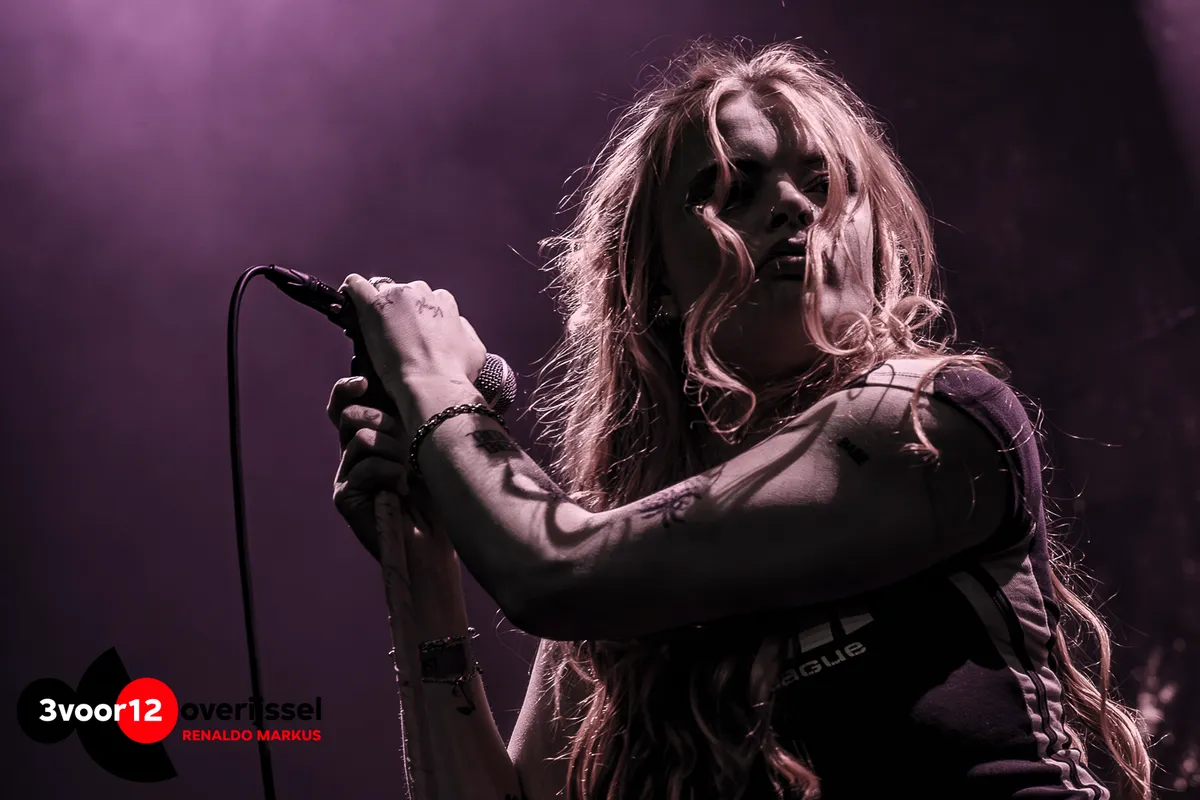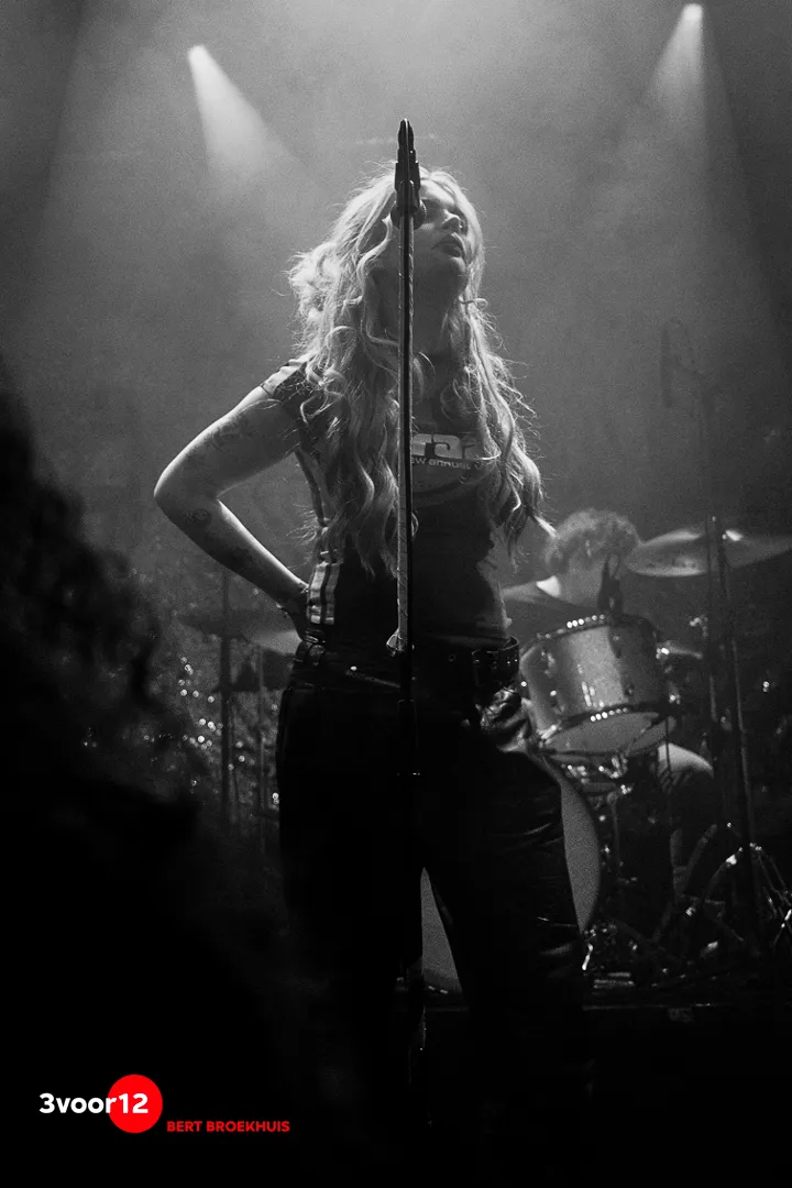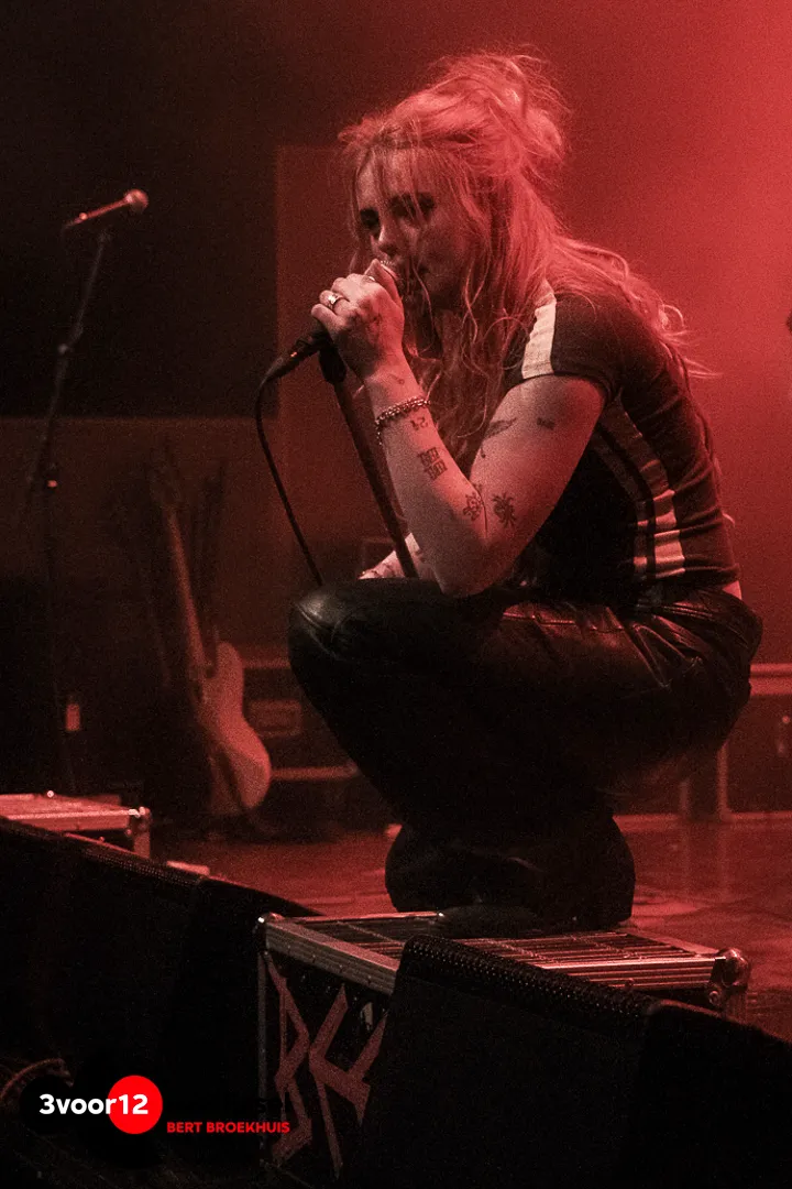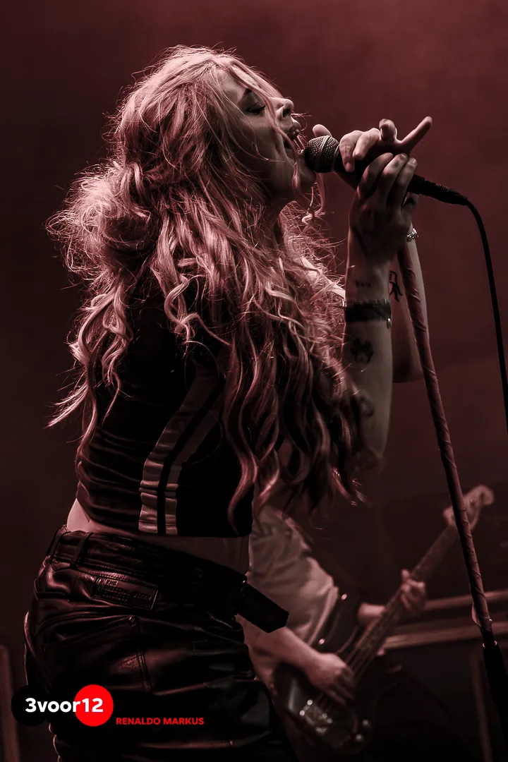 De band trapt af met ‘Midnite Train’ en komt in combinatie met rook vol energie het podium op. Een nummer dat met een heerlijk tempo en afwisselende passages de zaal opwarmt en het publiek kennis laat maken met de diverse facetten van het stembereik van Lian, want we waren toch al zo nieuwsgierig. Ik werd aangenaam verrast door haar sound in de cleane vocalen tot de uithalen met een rauw randje.