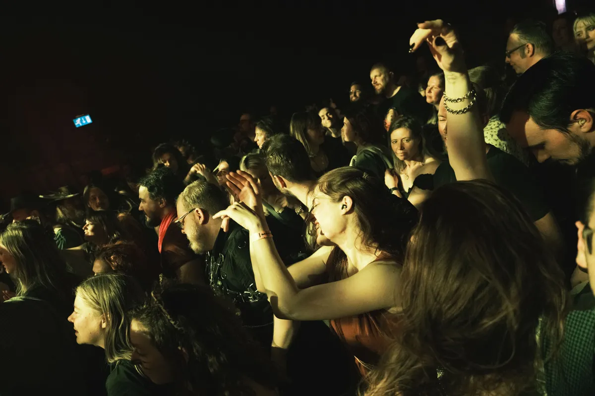 Voor de ingang van De Helling staan groepjes concertgangers ruim op tijd klaar bij de deuren. Deze avond zijn de bezoekers makkelijk te herkennen. Geheel in lijn met de folkscene zijn er schotse kilts, flatcaps, linnen tunieken, vikingbaarden (met en zonder vlechtjes), steampunk, cowboyhoeden, en juten hoedjes; als de drinkhoorn niet verboden was in concertzalen, had die hier zeker ook acte de présence gegeven.