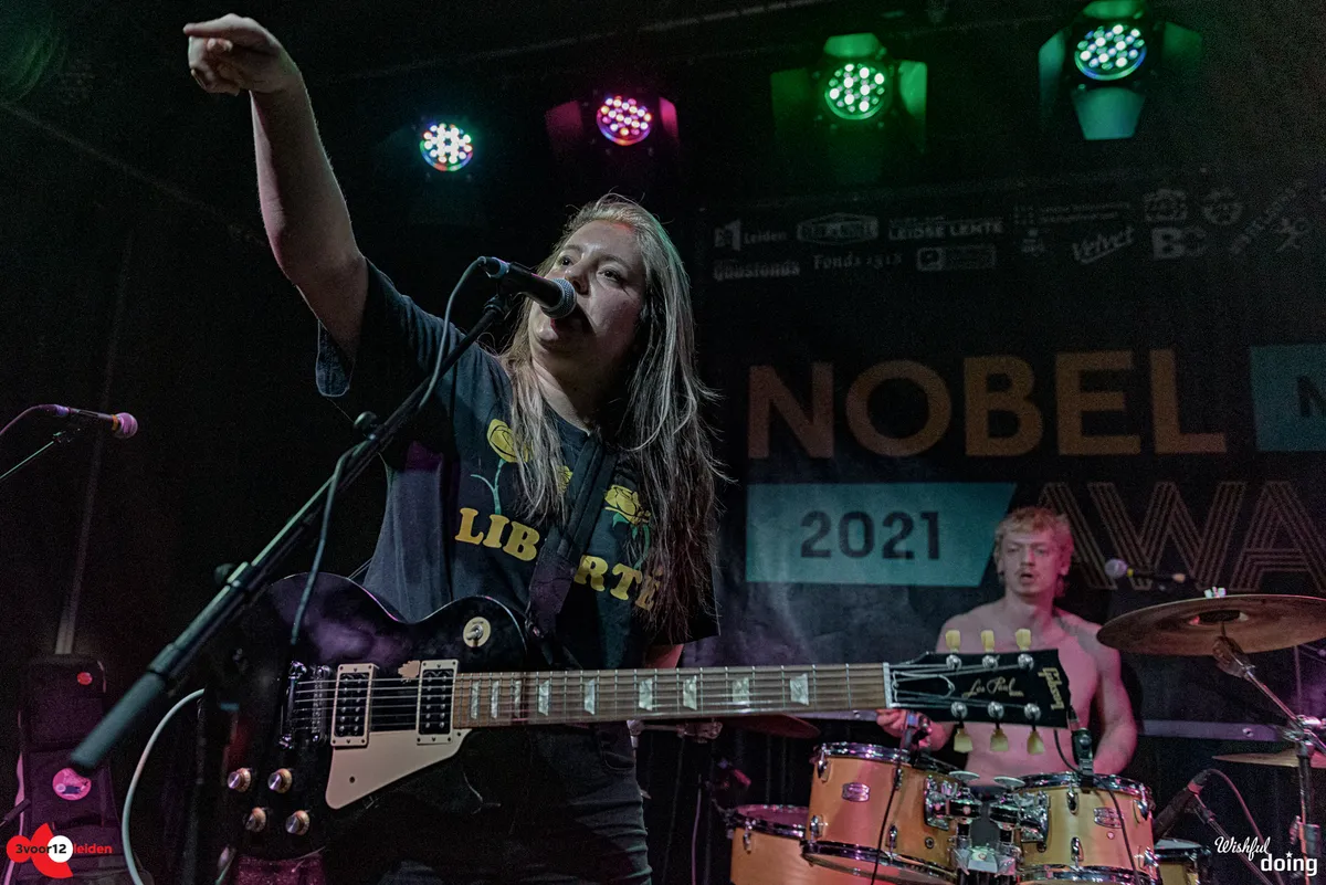 Derde is ‘rock ‘n’ roffa’-band El Fatso. Zij waren al Nobelfinalist in 2019; lukt dat nu weer? El Fatso is grungy, maar brengt dat niet zo ruig als zij kunnen. Het grootste deel van de show is in de vijfde in plaats van de zesde versnelling. De expressieve drummer heeft die wel, zijn dreads scheren op en neer. Met de uitstekende bassist vormt hij een goede ritmetandem. Bij hun laatste nummer tonen de mannen wat zij kunnen; het publiek gaat mee en de hele vloer voor het podium verandert in een moshpit.