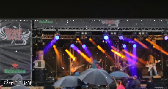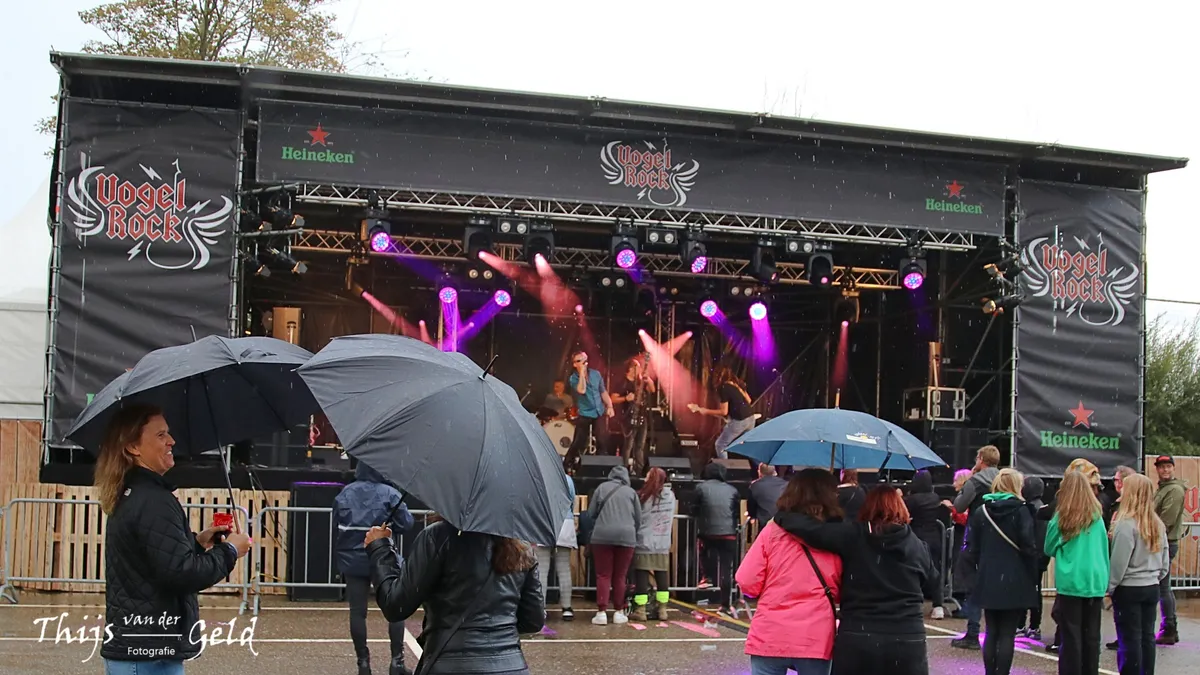 Buienradar gaf aan dat het zaterdagavond zou stoppen met regenen. Buienradar zat ernaast. Vogelrock in Vogelwaarde wordt zaterdag de hele dag geteisterd door buien. Dit mocht de pret echter niet drukken. De echte die-hard hardrockers waren in grote getale naar Vogelwaarde gekomen. ’s Middags werden ze vermaakt door de lokale helden van Four in Blood, Hendheving en Storm.
