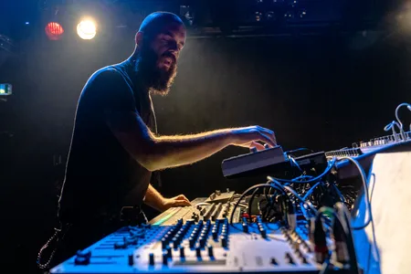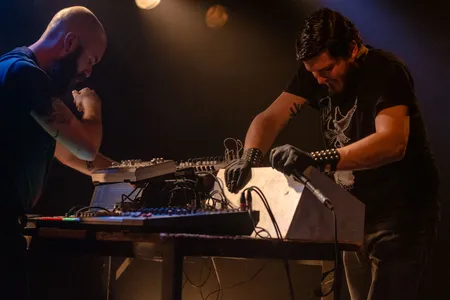 Aan Maltash uit België de eer om deze avond te openen. Opvallend feitje: het is gelijk de set waarbij de meeste belichting aanwezig is. Geen rode gloed of blauwe tint, niets van dat alles: gewoon helder licht. Er is goed te zien wat hij met samples, beats, effectpedalen en gitaar doet. Zo horen we vooral een mix van kale darkwave, flarden lichte noise, metal en vervormde vocalen. Bijzonder is de vermenging van Arabische klanken, in zowel de muziek als in zijn zang. Het oogt en klinkt soms wat rommelig. Verkeerd knopje hier, te vroeg ingezette sample daar. Maar wanneer het wel klopt, horen we een mooie eigen stijl.