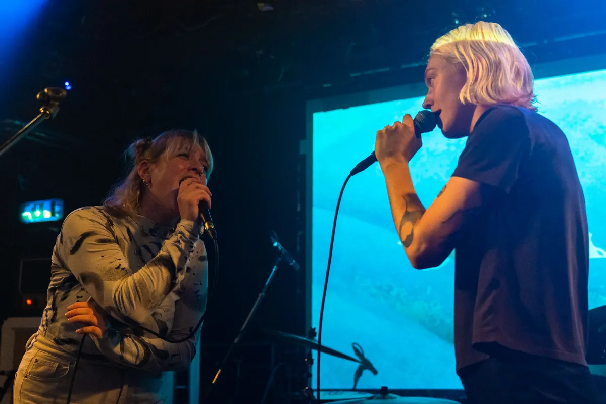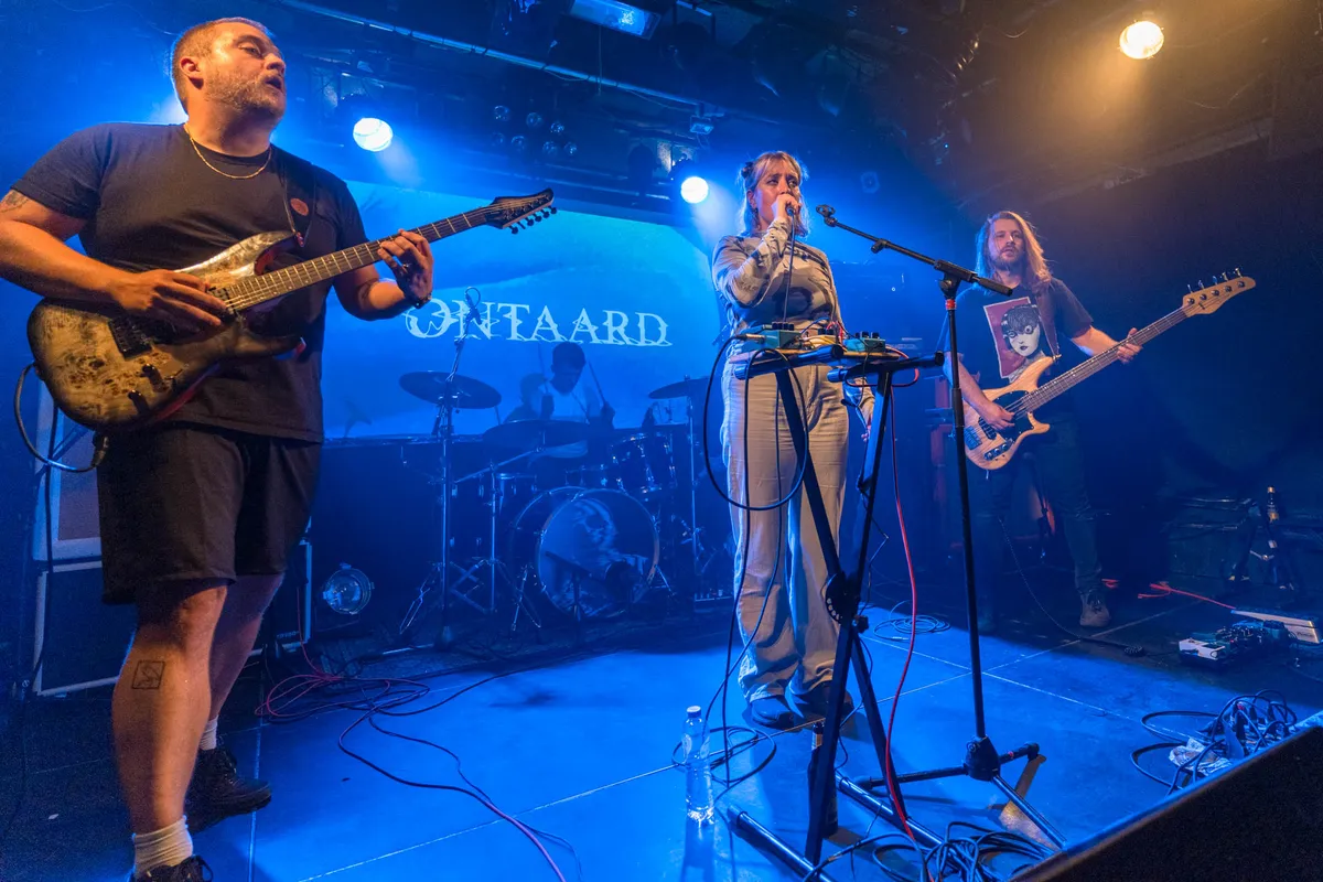 Dan is het de beurt aan Ontaard, tevens ook de start van het Utrechtse gedeelte op deze avond. Als de enthousiaste Shira van der Wouden, die vooraan stond bij Maltash, opeens het podium opklimt en er een prachtige waaier van gitaren opdoemt, weten wij al hoe laat het is. Althans dat denken we. Krijgen we lichtvoetige dreampop met postpunk? Ze kijkt eventjes afwezig de zaal in, meegevoerd door de muziek en dan… BOEM, een oerkreet ontsnapt aan haar lippen! Door die dreampop te mengen met de screams ontstaat er gelijk een geheel eigen geluid. Waar, als we invloeden moeten aanwijzen, wel wat terug te horen valt van een band als Amesoeurs. Maar een Deafheaven is bijvoorbeeld ook niet ver weg.