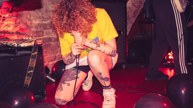 Ook al zijn de ballonnen zwart, ze staan vooral voor vermaak. Aan het begin van het optreden wenst Eva ons “veel plezier, veel plezier”, waarna het zeer korte - met een Atari-sausje doordrenkte- ‘Tell On Me’ punkig losbarst. Er wordt meteen een wereldje gebouwd. En die wereld komt het best tot leven in het donker, ondergronds, waar de muren kunnen zweten en de bas door je borstkas gromt. Voor een intens Shake your body like the dance!- gevoel