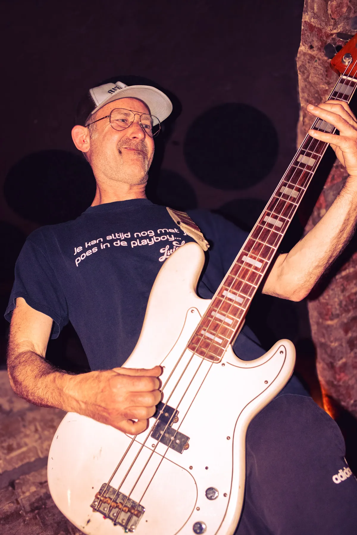 De keuze voor een releaseshow van het in april uitgekomen debuutalbum in de kelder is niet zomaar. “Daar leeft de mesofauna, ja, ja!” grijnsde Anne in een eerder interview met ons (mesofauna is de verzamelnaam voor ongewervelde insecten die in de bodem leven, red.). Vanavond geen grootse zaal, maar een mini-wereld, voor deze gelegenheid vol zwarte ballonnen die de bandleden zelf hebben opgeblazen.