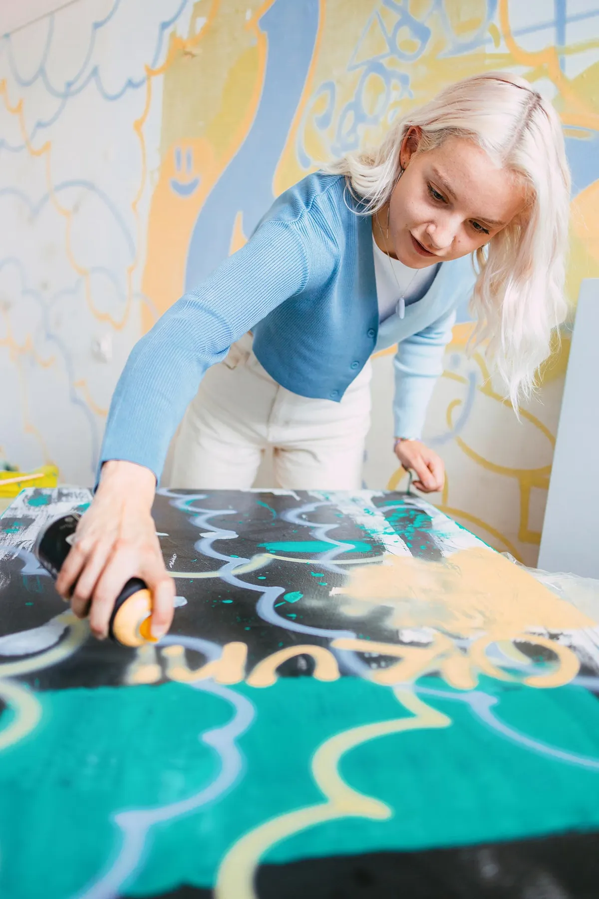“Ik vind het moeilijk om te zeggen wat ik doe. Ik zou zeggen video-editor en ook twee dagen social media manager voor REBIS artist mngmnt, maar soms ben ik ook weer aan het schilderen en fotograferen. Ik doe alles wat er in mijn hoofd op komt en soms hangt daar dan een kaartje 'werk' aan. Tussendoor maak ik ook veel muziek, ik doe sessies met anderen of ik zit in mijn eentje te prutsen in Logic. Op dit moment vind ik het vooral leuk om veel verschillende projecten te doen. Muziek is een beetje stiekemig de laatste tijd. Ik laat het niet echt aan mensen horen, ik ben er wel heel trots op, maar het is nog heel erg van mij."