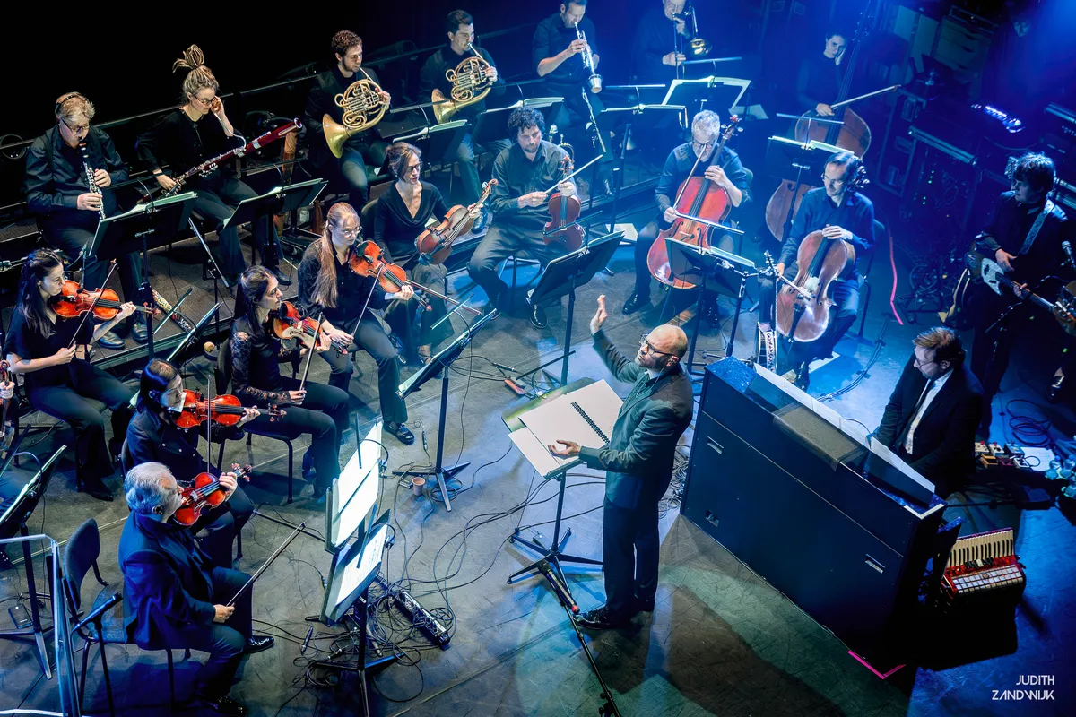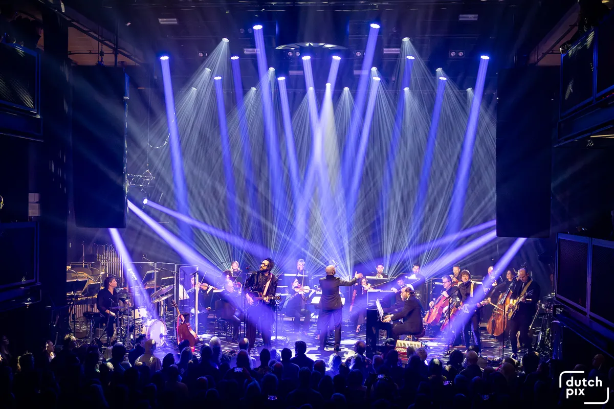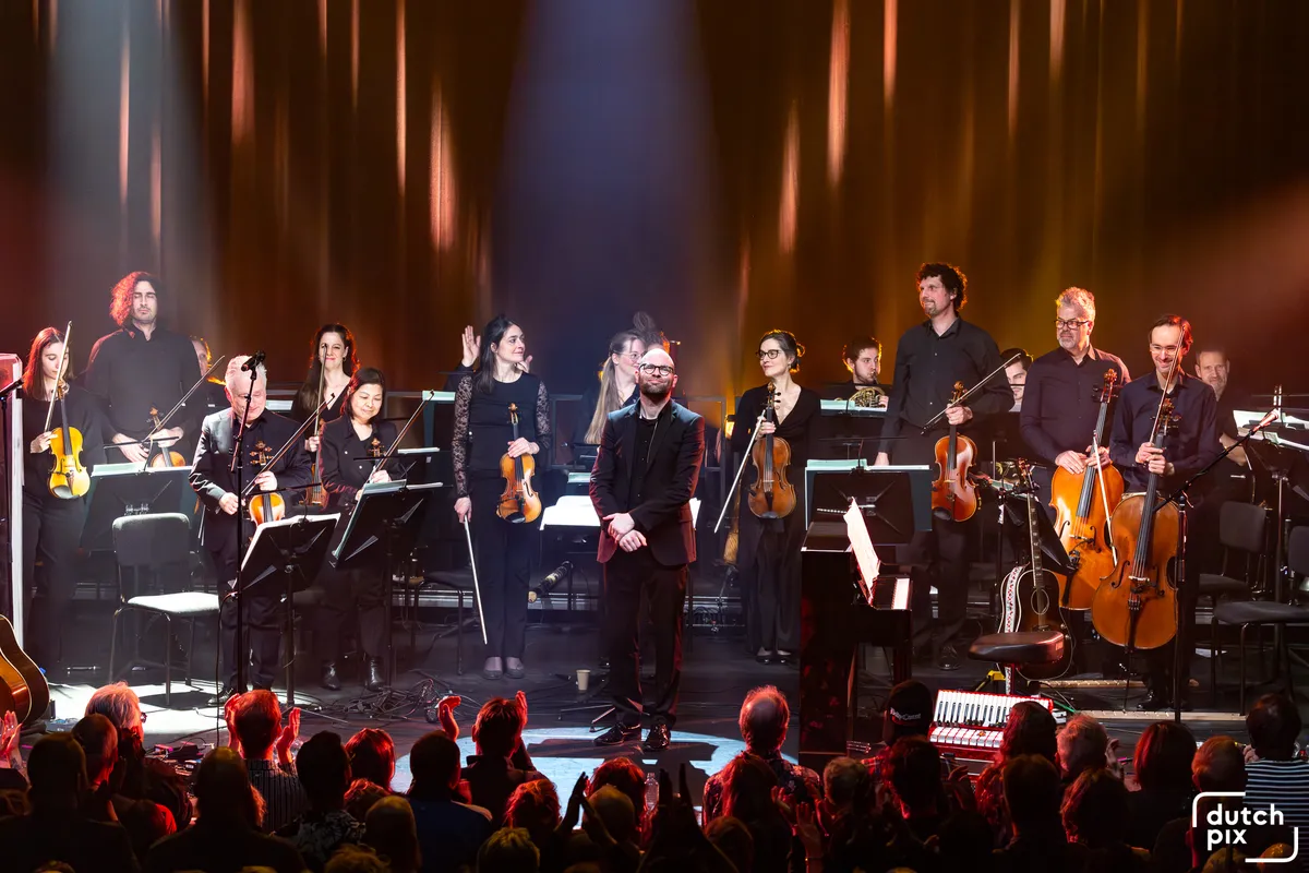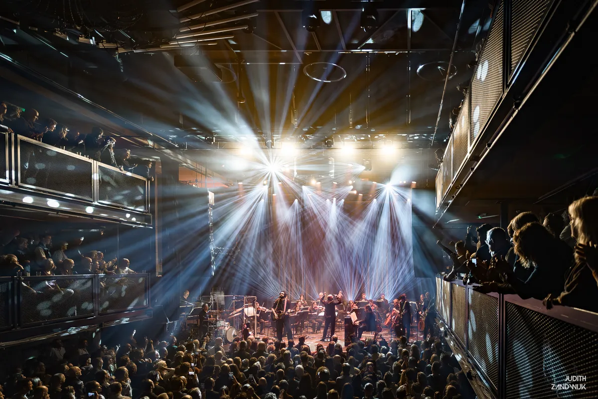 Met ‘Islands’ en ‘Kayo’ wordt duidelijk hoe de avond gaat klinken. Het orkest opent breed en gelaagd,en bouwt spanning op. Waarna Blaudzun zich er als vanzelf in voegt, en samensmelting tot één geluid. Het volle podium maakt indruk; strijkers, blazers en bandleden vullen elke vierkante meter. Het oog komt bijna tekort. Tegelijkertijd vraagt het wat van het publiek achterin. Voor de kleinere bezoekers is het soms lastig te zien wie precies wat speelt, iets wat in een concertzaal overzichtelijker uitpakt. Toch heeft juist dat volle, licht chaotische beeld ook charme: een symfonisch apparaat dat zich in een popzaal wringt en daar verrassend goed past.