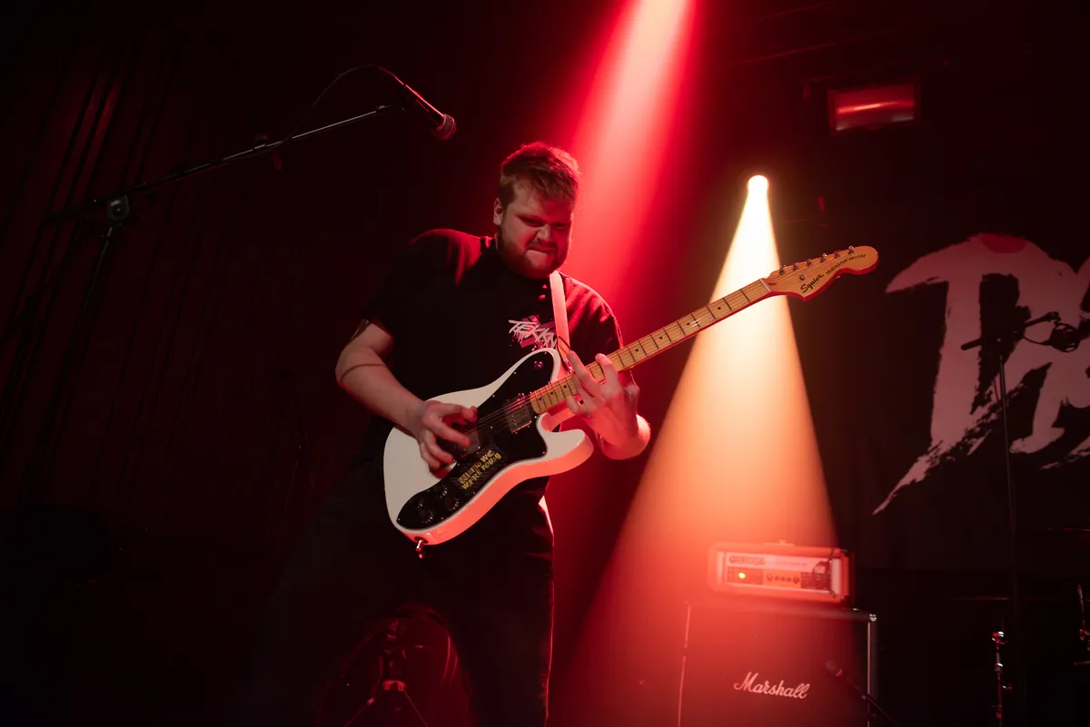 Al vrij snel wordt het duidelijk dat er veel bekenden van de band in de zaal staan. Veel zingen luidkeels mee of supporten de band op andere manieren: “Niels, laat je kut zien!” Ook heeft iemand zijn oma uitgenodigd, die rustig aan de zijkant staat toe te kijken. Hopelijk had ze oordoppen in, want vanavond wordt het publiek doodgegooid met een hevige lading distortion en andere crazy gitaareffecten.