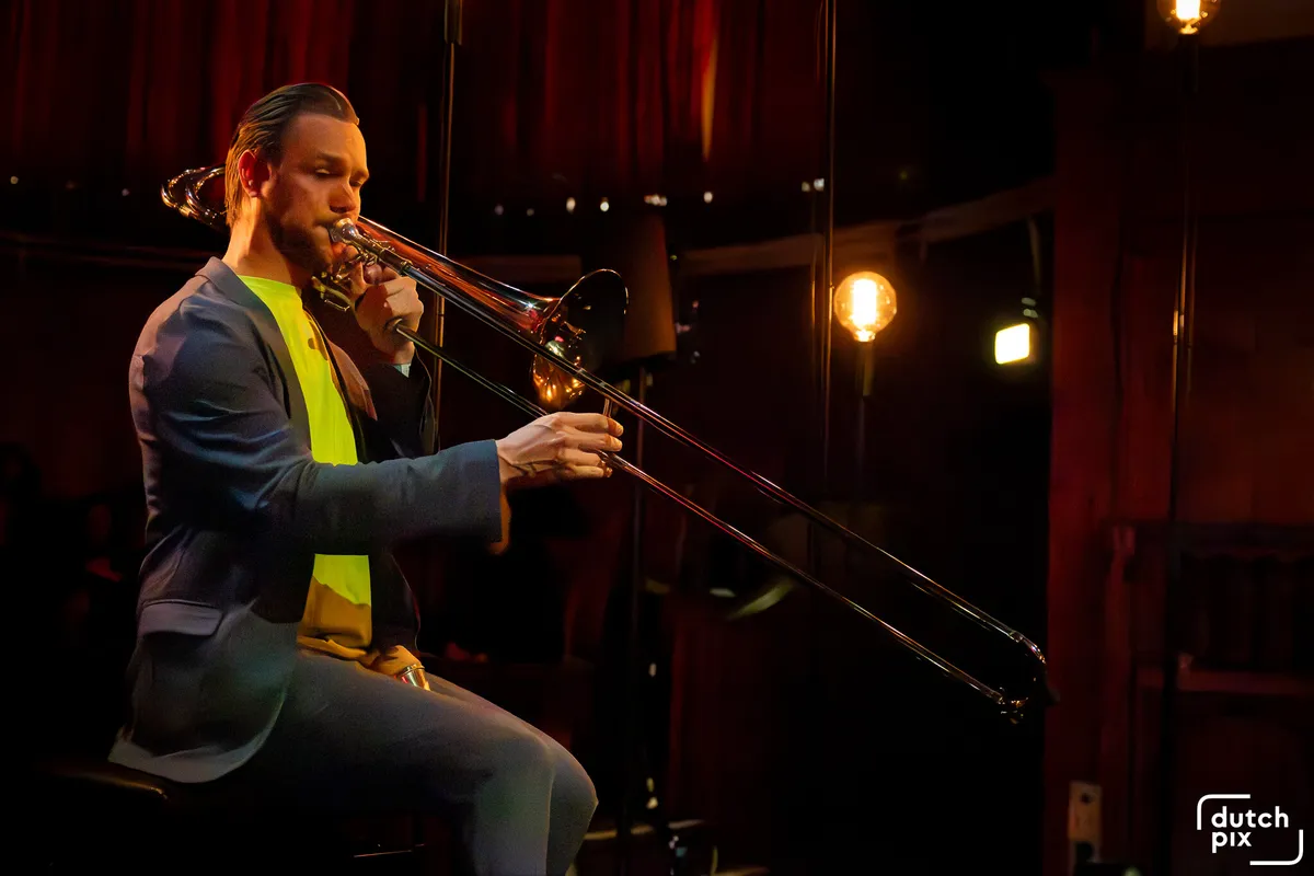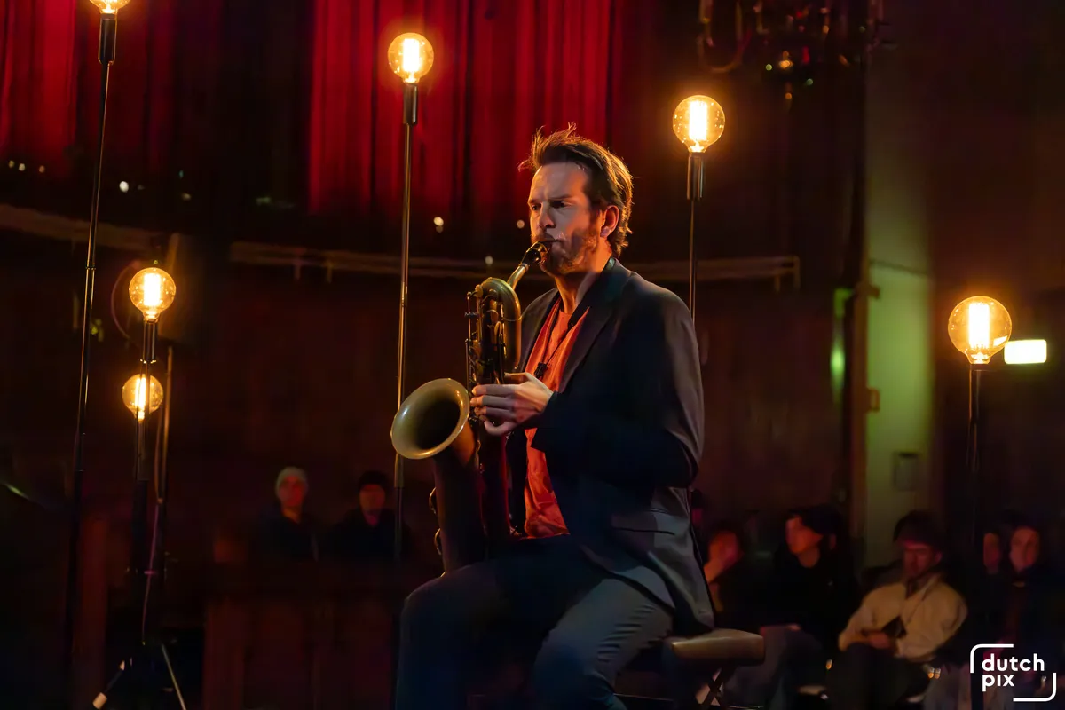 Dat is maar goed ook, want dan kunnen ze zich richting de Lutherse Kerk begeven voor het Londense jazz trio Flur. De kerk is vandaag zo spaarzaam verlicht dat de zwanen die in het interieur zijn aangebracht als symbool voor de naamgever van deze kerk, niet te zien zijn. Vanavond is ook geen sprake van een zwanenzang, want debuutalbum Plunge is pas een half jaar oud. De saxofoon van Isaac Robertson trapt af, waarop harpiste Miriam Adefris subtiel inhaakt en percussionist Dillon Harrison aansluit. Wat volgt is drie kwartier hoogstaande jazz. Waar het album wat lieflijk klinkt, heeft het live meer pit, en tussendoor joelt het publiek. Elders zou deze muziek op dit tijdstip misschien doodvallen, het Rewire publiek omarmt het volledig.
