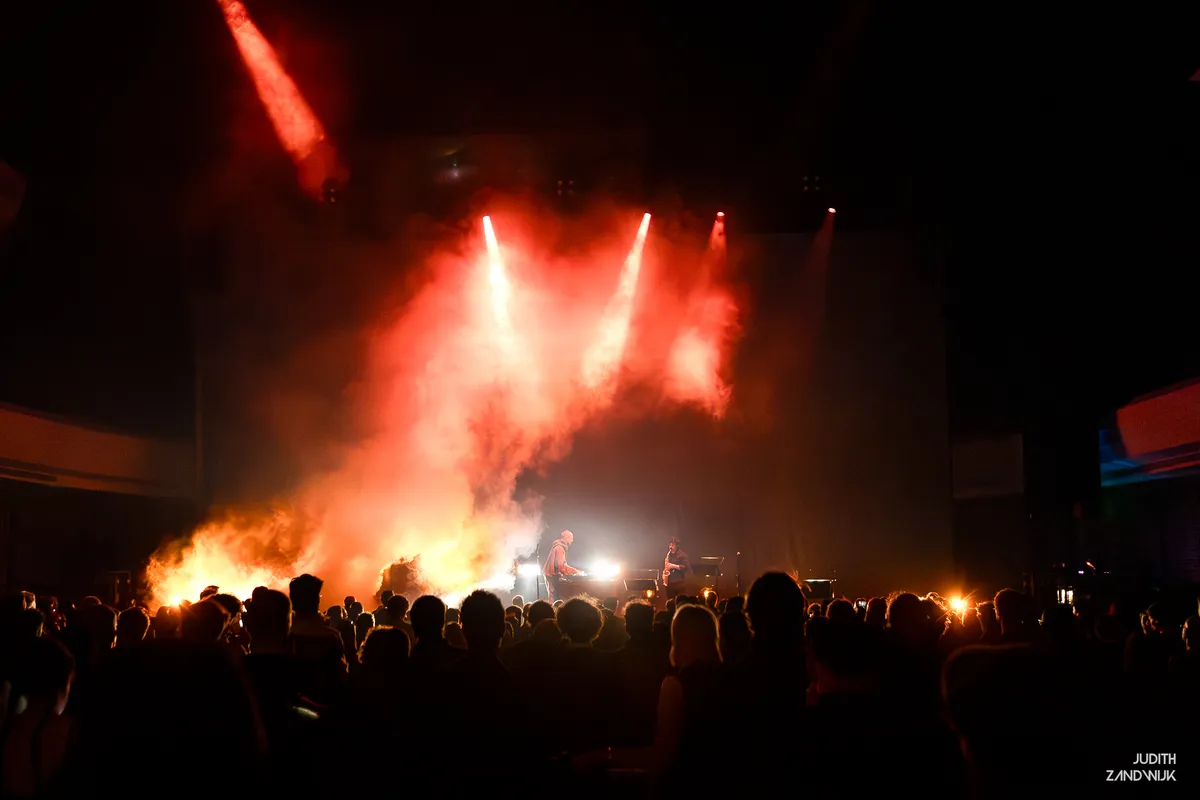 Als we het over rituelen hebben: er vindt er nog één plaats in de concertzaal van Amare. Sam Slater brengt hier zijn solo-album Lunng ten gehore. In het midden van het podium branden mistige koplampen van een auto in de duisternis. Weerspiegelt de muziek een dystopische toekomst of de huidige staat van de wereld? Duister, maximalistisch en keihard. Ondanks de heftige aard, zit er een zekere schoonheid aan, een verlangen om vast te houden aan hoop. Dan, een snelweg met een gloed op de horizon die onherroepelijk dichterbij komt. Staat de horizon in brand of is dit het licht aan het eind van de tunnel? Als de volumeknop nóg een stukje verder open wordt gedraaid, lijkt het antwoord daar: een regen van vonken, een weg door een brandend bos. Midden in de vuurzee kan je het alleen maar over je heen laten komen. En dan is het plotseling voorbij. Oh ja, we leven nog. En weer door.