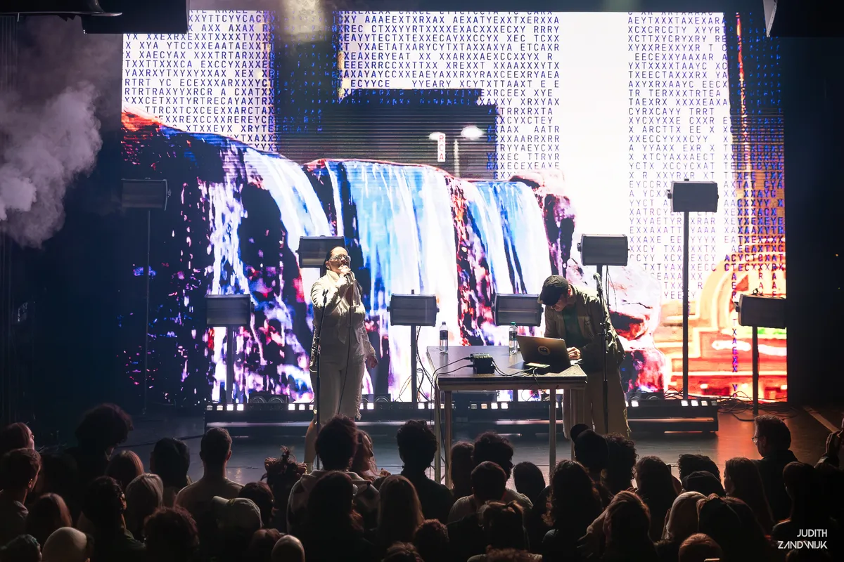Weer terug in de Lutherse kerk zijn we getuige van een absoluut hoogtepunt van de avond. Componist/producer Raül Refree(die we onder andere kennen van het debuutalbum van Rosalía) en zanger Niño de Elche tonen hun mix van flamenco en elektronische avant-garde, een première in Nederland. En wat voor één: van de subtielste synth lijntjes en gefluisterde zang naar uithalen die toeschouwers hoorbaar naar adem doet happen. Alles is raak. De Elche, in diepe focus op een krukje met handen gevouwen en ogen gesloten, toont een onvoorstelbare vocale reikwijdte. Refree slaagt erin zijn gevoeligheid één op één te matchen met zowel een verbluffend mooi gitaarspel als ingetogen soundscapes. Dit zijn twee muzikanten die volledig op elkaar afgestemd zijn, en die balans op overdonderende wijze weten over te brengen. De staande ovatie houdt minutenlang aan.