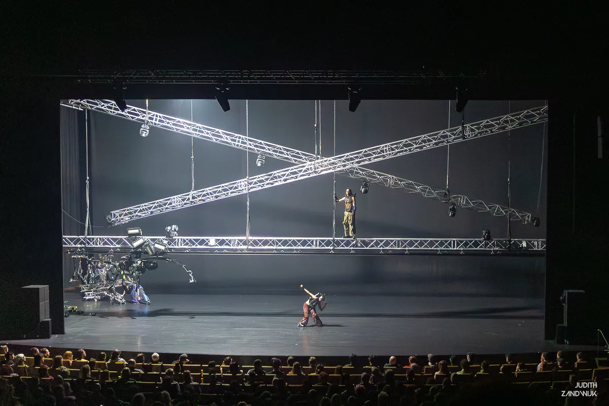 Net voordat ‘U>N>I>T>E>D’ begint, een performance over een grimmige toekomst, schalt een opgewekte toon door de luidsprekers: “Welkom allemaal bij Amare.” Vervolgens stapelen de tegenstellingen zich op. De kale soundtrack van Gabber Modus Operandi versterkt de dystopische beleving, maar weerhoudt de performance van het stempel exceptioneel. Dat komt door het ontbreken van een climax of gelaagdheid. Waar de diepgang in muziek ontbreekt, blinkt de rest uit in detail. De apocalyptisch geklede dansers wisselen robotische stijfheid af met vloeiende menselijke choreografie. De modulaire ledematen (het werk van animatronic bedrijf Creature Technology Co.) lenen zich uitstekend als verlengstuk van het lichaam, het decor en passen perfect in het thema.