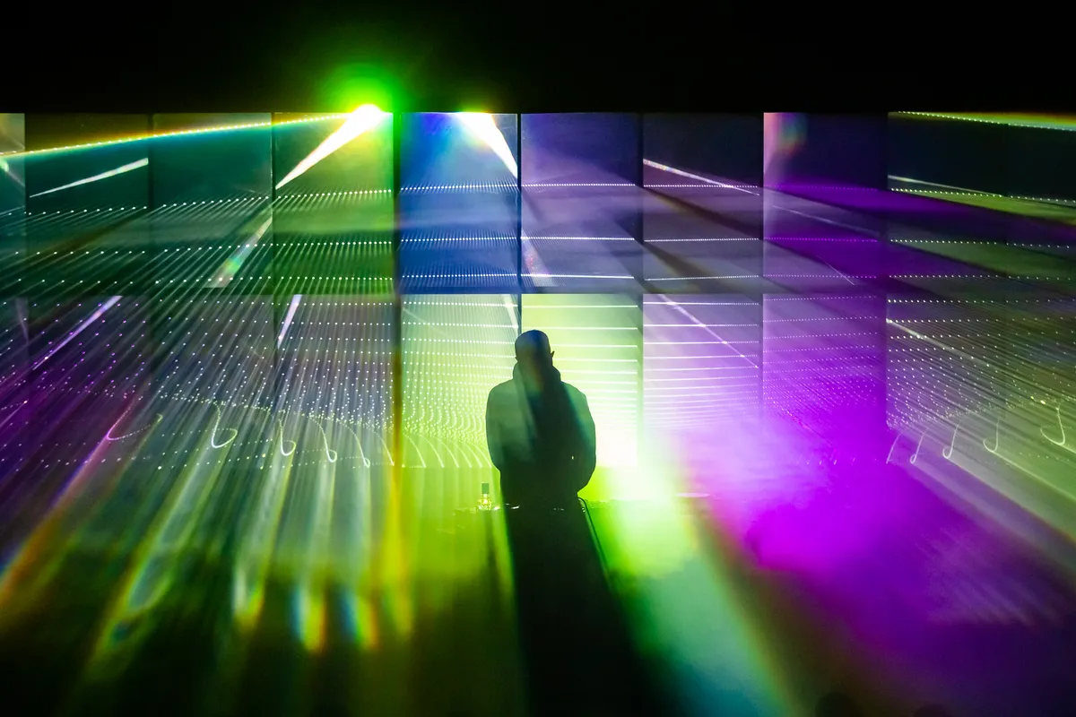 De gemaskerde Evian Christ sluit de grote zaal af met een high definition DJ-set. Die start met een intelligente mix 'Ultra' en bouwt dynamisch op naar een genadeloos hoogtepunt en houdt dat niet alleen vast, maar bouwt verder. Steeds een stapje erbovenop, tot het niet meer kan. De backdrop van reflecterende lichten helpen het naar een ultra-wide niveau te tillen. Een bijna verblindende vertoning. Zowel de aanwezige doorgewinterde clubbers als de liefhebbers van elektronische muziek is dit een zinderende show. Een goddelijk randje is te bespeuren in de combinatie van synth & zang. Popvocaaltjes, operateske samples en gure glitchy beats. In de wereld van Evian Christ past het. En het werkt. Een ware deconstructie van elektronische muziek. De volgende keer in 8K-resolutie graag.