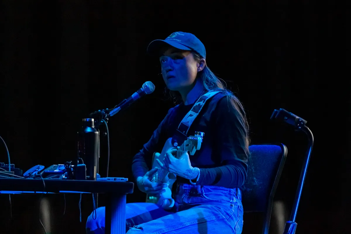 Een heel stuk verderop in Amare, is Grouper begonnen. We peuteren ons los van Carl Gari & Abdullah Miniawy en versnellen ons richting het Spuiplein. Bij binnenkomst is het sonische dwaalparadijs van Liz Harris voelbaar. Dit is typische muziek waarin je onderdompelt in het zijn van de act zelf. De zienswijze is van alle kleur onttrokken. Een gitzwart, eindeloos sonisch landschap vergezeld met grijze visuals. Er is hier en daar een brom van onnodige feedback hoorbaar, maar dat maakt geen deuken in de performance, dat sowieso al omlijst is door allerlei lagen van weemoed. Soms als een zachte deken en veelal als een donkere wolk. Briljant.