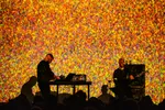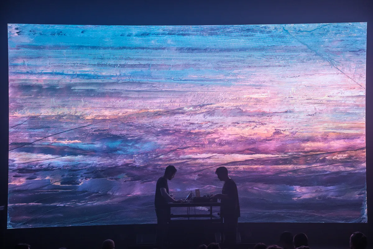 Maar laten we niet vergeten dat er ook een derde naam is betrokken bij dit optreden, namelijk die van de Nederlandse audiovisuele artiest Tarik Barri, waarvan we vermoeden dat hij verantwoordelijk is voor de beelden die het optreden aanvullen. We zien iets wat lijkt op de ruis van een ouderwetse tv op een bedje van kleuren, bewegende verf en nog veel meer. We vragen ons zelfs af of we, als we lang genoeg naar sommige beelden kijken, een 3D-afbeelding zullen zien. Veel tijd om rustig te kijken, hebben we echter niet. Het tweetal op het podium, aangevuld met Barri, levert namelijk een overweldigend optreden af dat alle zintuigen non-stop teistert.