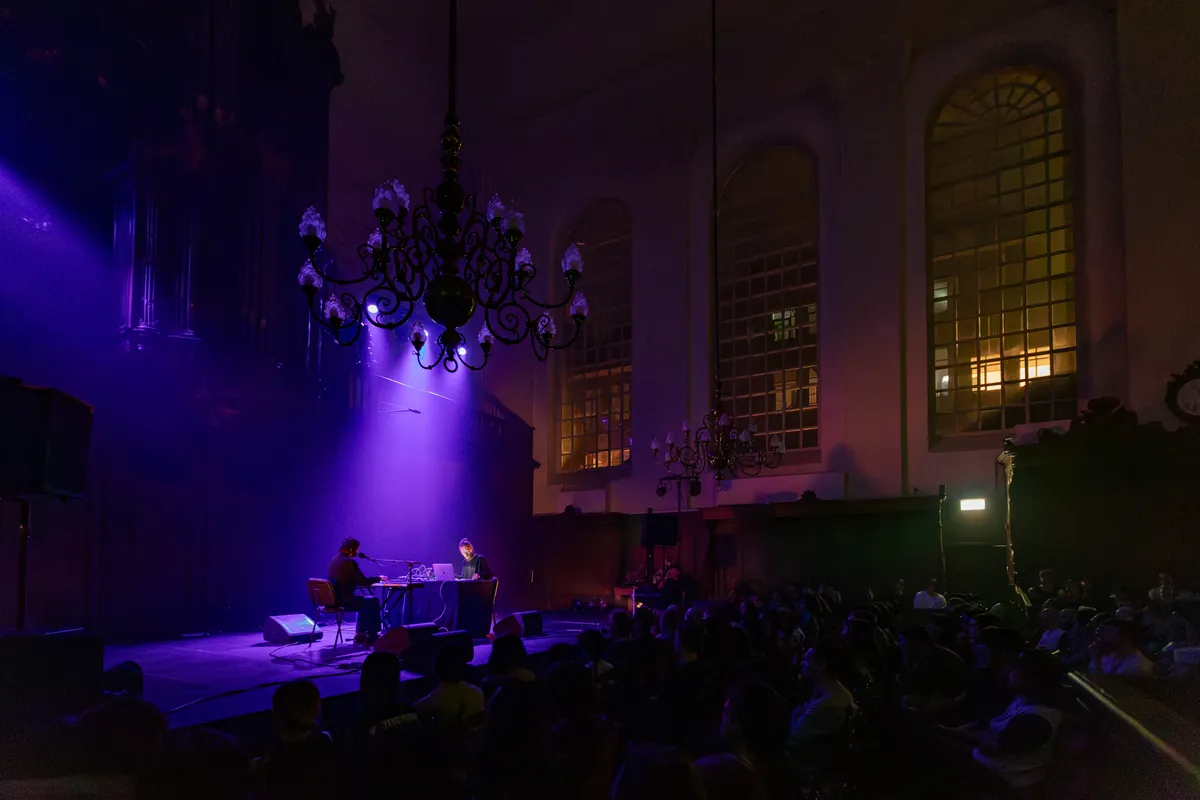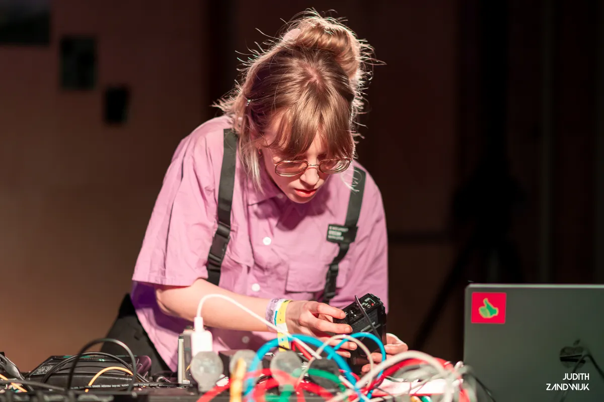 "I canceled my Spotify subscription", zegt Jenny met een zachte stem. Wat een rebellie! En dan volgen er opmerkingen die overkomen als complottheorieën, zoals de band tussen Spotify en militair AI-bedrijf Helsing. Volgens Jenny heeft muziek altijd geknikkerd met deze industrie, vanaf het moment dat er showbands bestaan. We zijn het niet oneens, maar is er genoeg ruimte om dit soort grote onderwerpen aan te raken? Hadden we het niet net over de ongrijpbare dingen in het leven? De dromerige muziek van Jenny Hval sluit totaal niet aan op de besproken thematiek. Met een vol hoofd door de philoso-pop, zoals Rewire haar muziek omschrijft, vervolgen we de route.