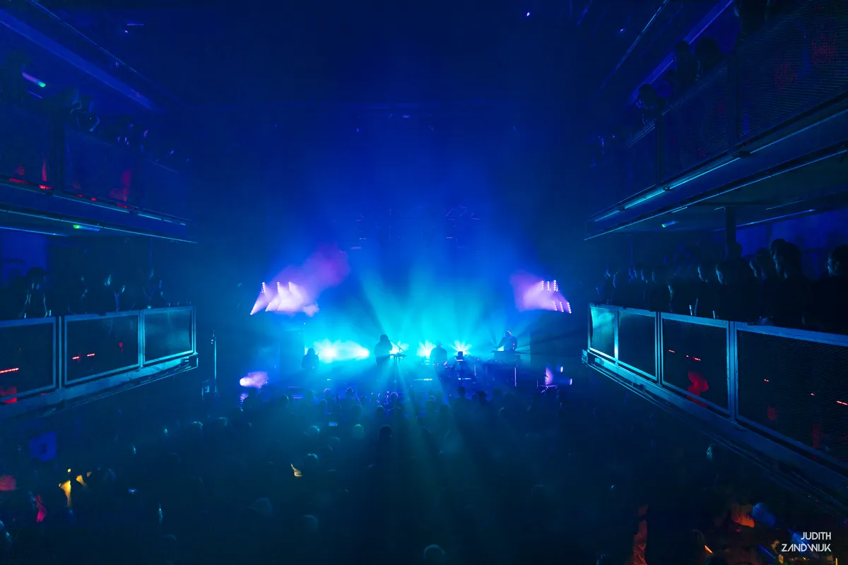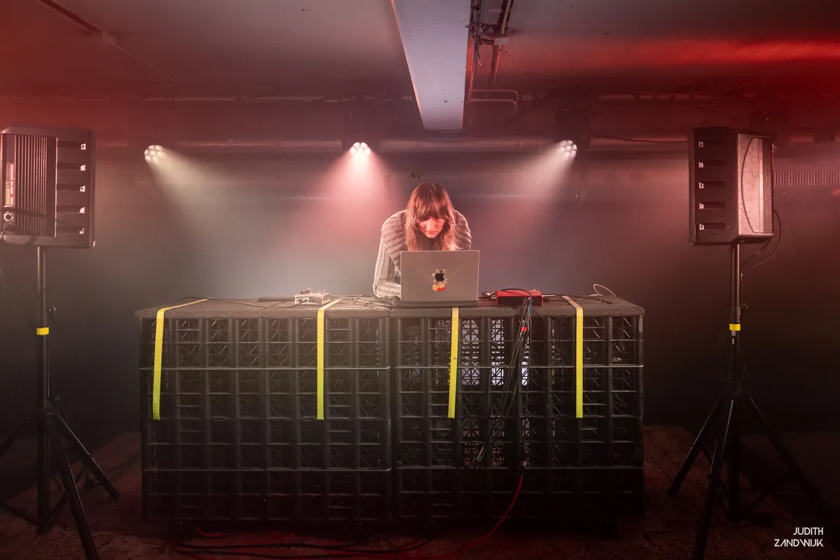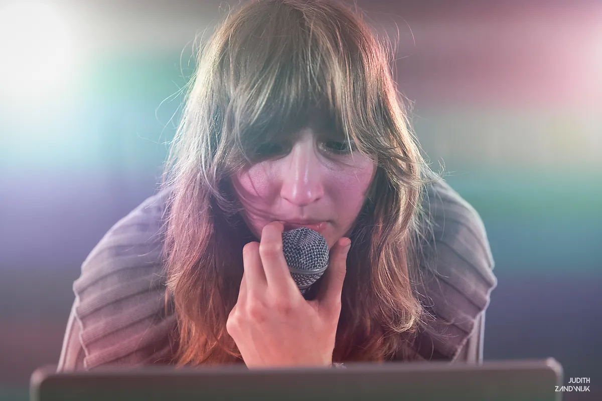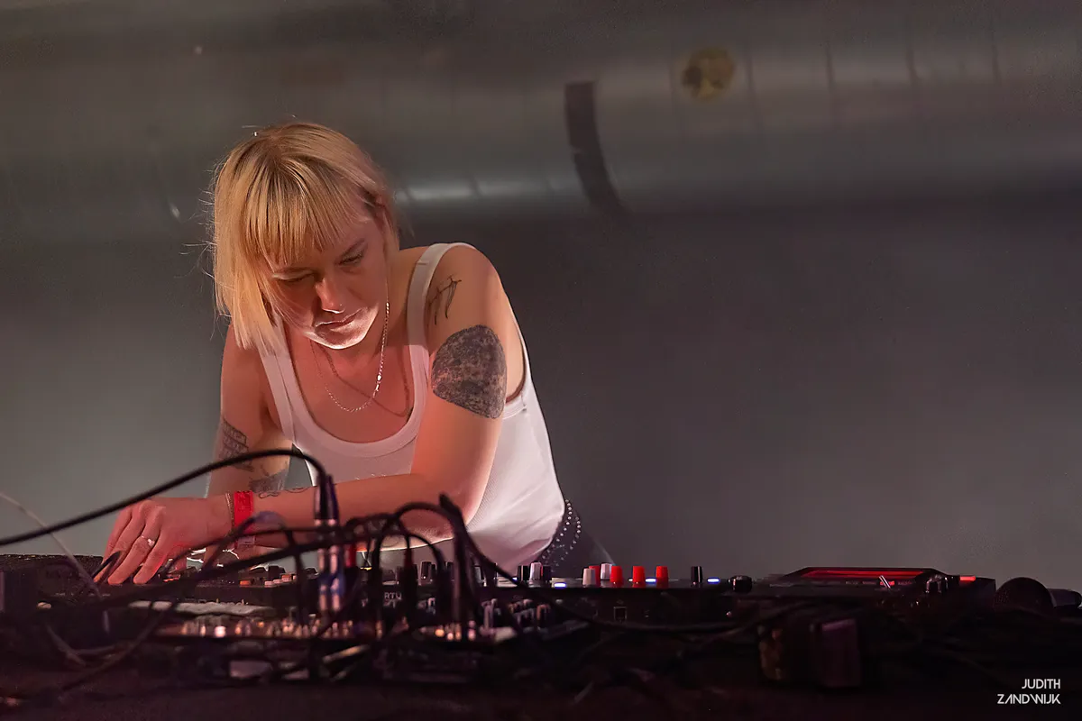 Even verderop hangt Belia Winnewisser, gehuld in een zwarte hoodie, zwarte broek en Dr. Martens aan de voeten, gebogen over de synths en samplers. De Zwitserse muzikant heeft eerder in indiebands gespeeld, maar richt zich tegenwoordig voornamelijk op elektronisch solowerk. Over pompende kicks worden kleurrijke klanken gedrapeerd, en af en toe pakt Belia de microfoon om etherische vocalen over dit bed van computergestuurde muziek te leggen. Hier en daar hoor je in de ambientale grootsheid van de producties terug dat Winnewisser ook muziek voor games en audiobooks maakt, maar al met al blijven de beats alomtegenwoordig in de kelder van The Grey Space. Echte drops blijven uit, maar desalniettemin danst het publiek gedwee mee met de combinatie van melodische synths en dreunende beats.