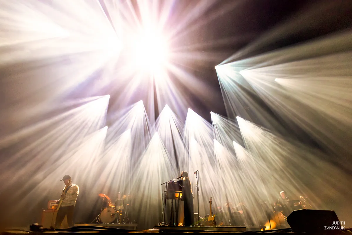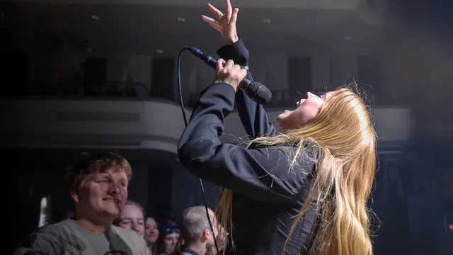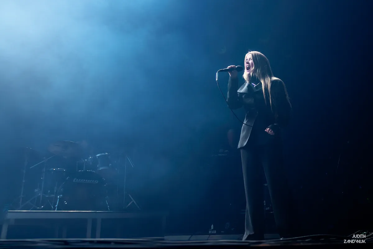 Voor Anna von Hausswolff is het optreden in de concertzaal van Amare niet het eerste in Den Haag. Sterker nog, enige Rewires geleden bespeelde de Zweedse nog het enorme orgel in de Grote Kerk. Daar zette ze een instrumentaal en indrukwekkend optreden neer waar ze zelfs helemaal niet te zien was. Hoe anders is het deze avond. Op het podium staat een flinke band, met onder meer twee drummers, en Anna vooraan in het midden.