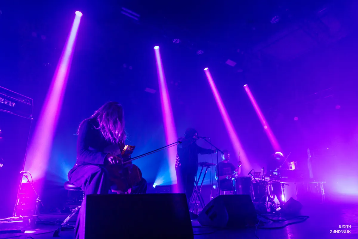 Het kwartet dat vanavond op het podium van PAARD staat begint meteen met stevige bassen, instrumentatie die wij niet direct thuis kunnen brengen en een zanger die vooral geluiden voortbrengt. Wat volgt is bijna een uur aan sonische terreur die op zijn tijd naar een climax toe werkt om daarna weer in intensiteit terug te zakken. Om ervoor te zorgen dat het publiek wat er op het podium gebeurt ook voelt, is de lage bastoon vrijwel altijd aanwezig en is één paar oordoppen nauwelijks voldoende om tinnitus te voorkomen. Het wekt dan ook geen verbazing dat Guðnadóttir, vandaag op een soort experimentele cello, ooit met Sunn o))) toerde. In dit optreden zit iets meer tempo, maar veel spannender dan die band - die vorig jaar nog op Rewire stond en bekend staat om ellenlange drones op hoog volume - is het niet.