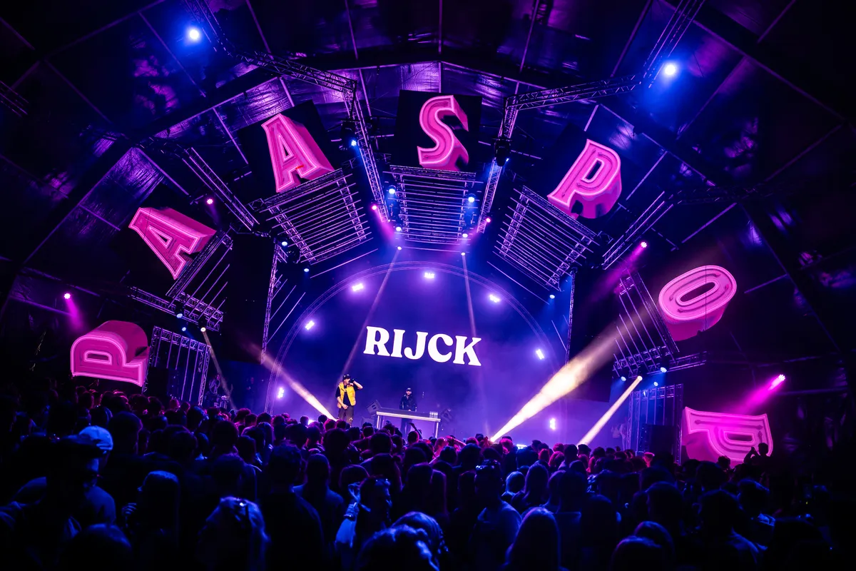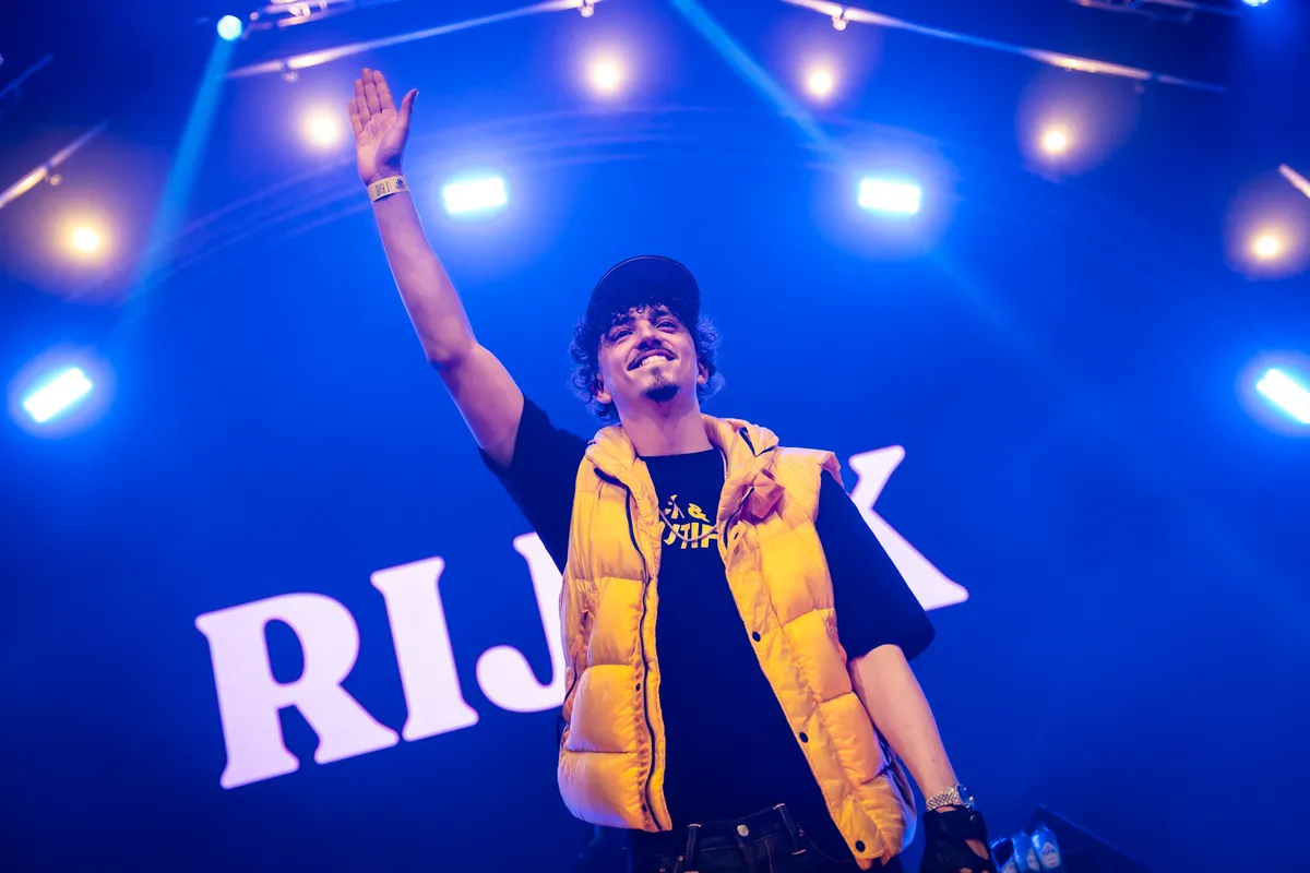 De Roxy-tent oogt zoals je ’m wil hebben: zeven grote ledpanelen boven het podium, een rits aan ledbuizen, alles strak in sync met de beats. Nog voordat Rijck überhaupt opkomt, hangen telefoons al massaal in de lucht. De verwachting is er, maar kan de Rotterdamse rapper de hype waarmaken?